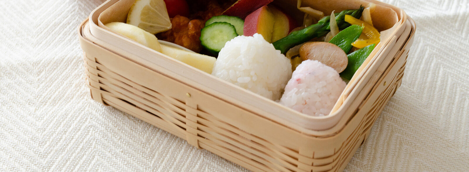 R211201 鹿児島県/白竹 手つき弁当かご 小 四角・長型/一段・二段 4種
