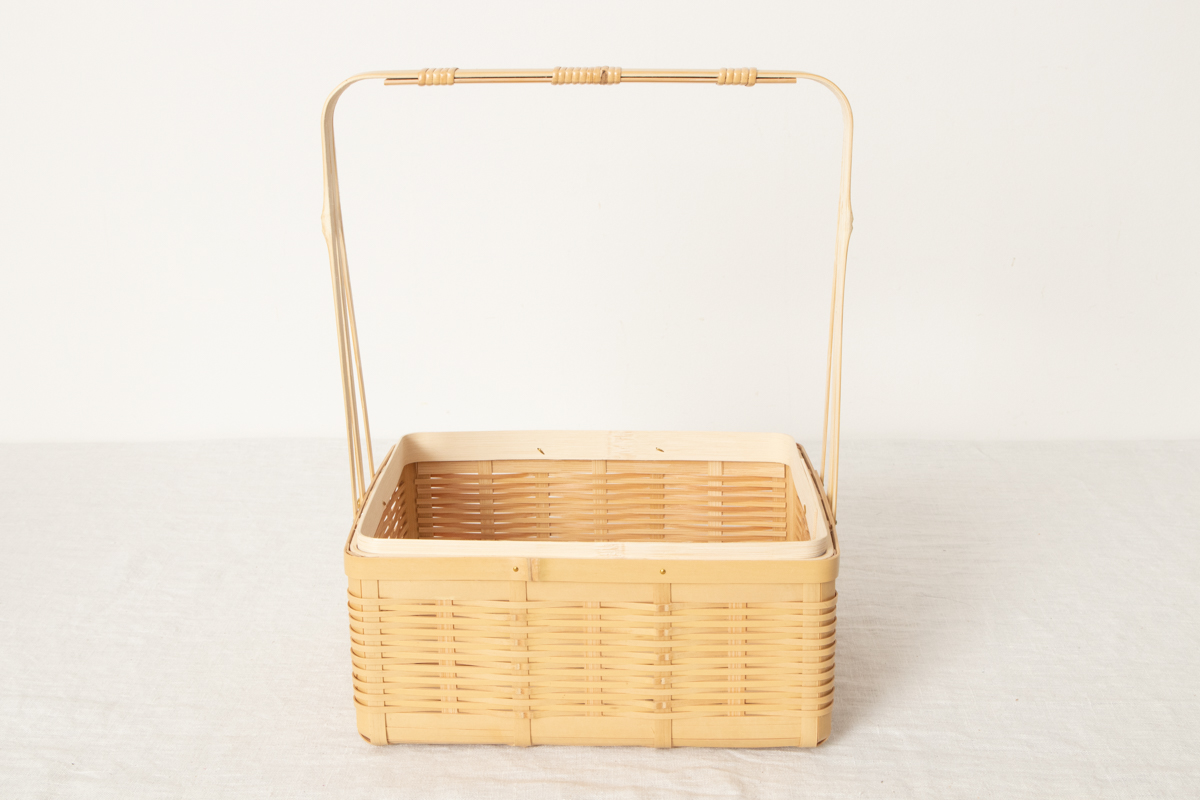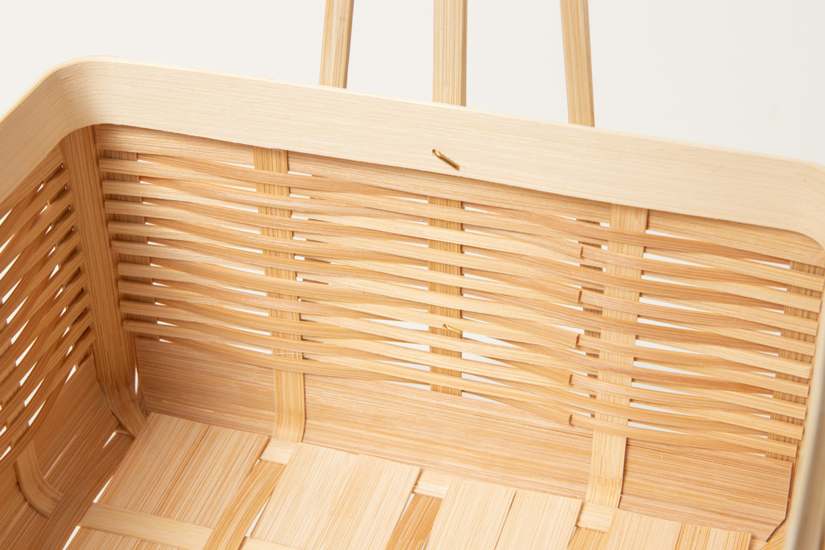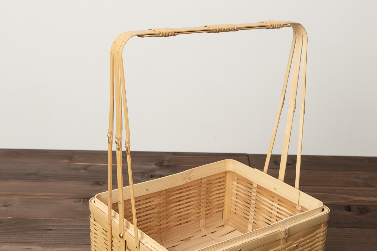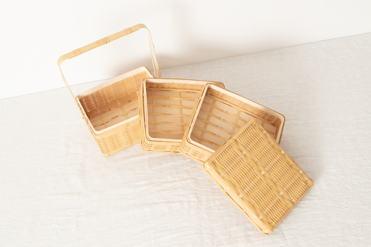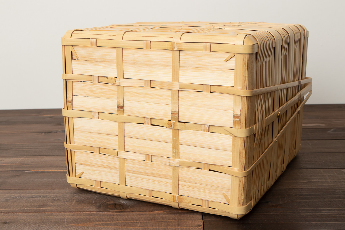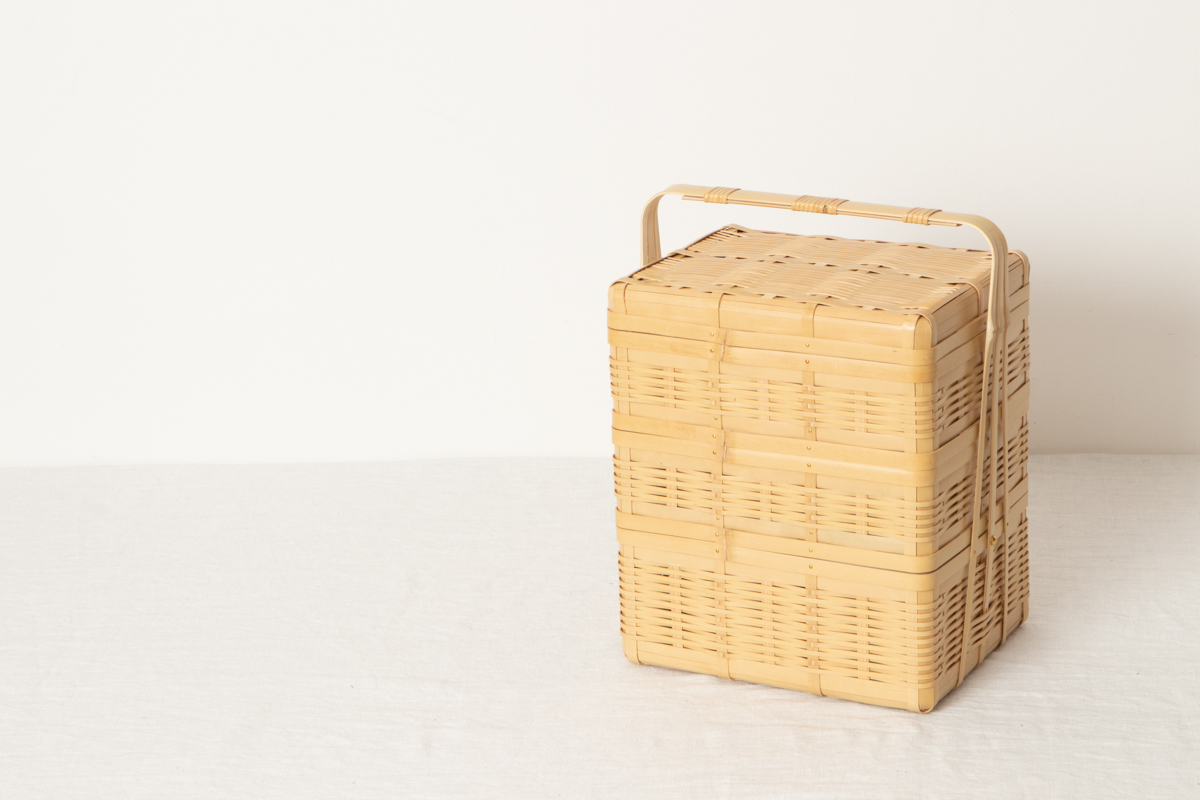 通気性がよい竹を編んで、お重のような形を作っています。