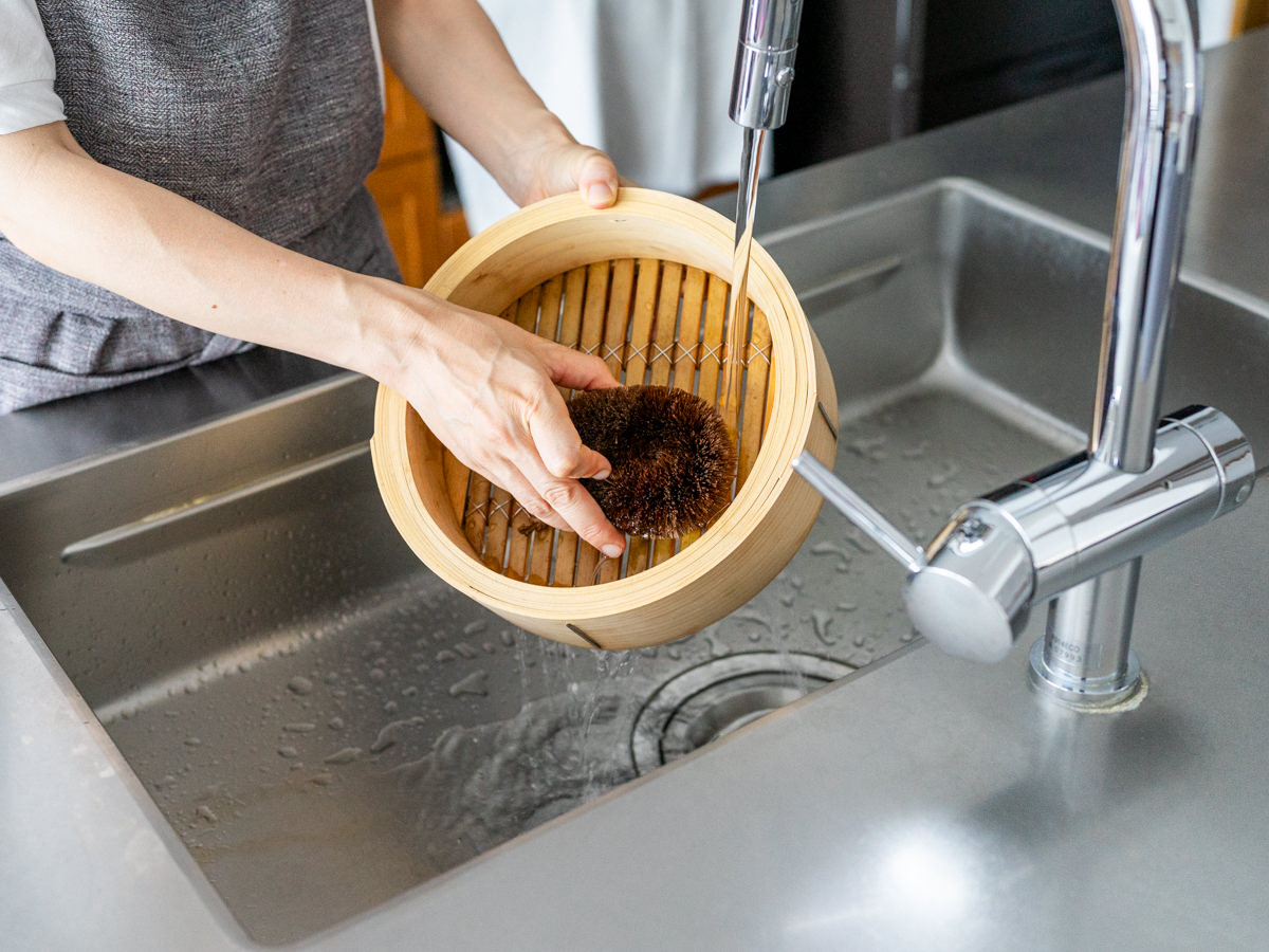台所まわりでせいろをあらったり、ざるをあらったり。かごのケアや掃除でつかったりと、気軽におつかいいただけるサイズです。