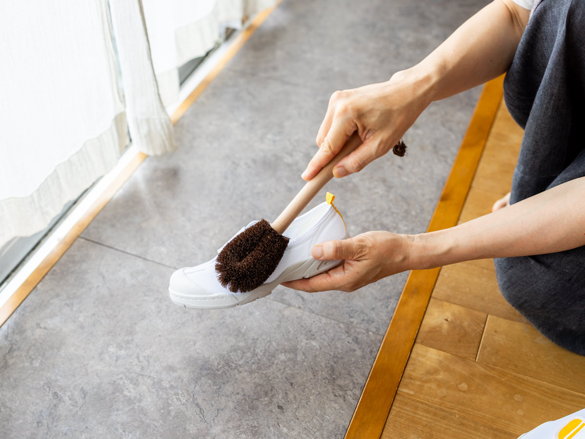 しゅろの繊維でこすることで、やさしく上履きやスニーカーのよごれを落としてくれます。