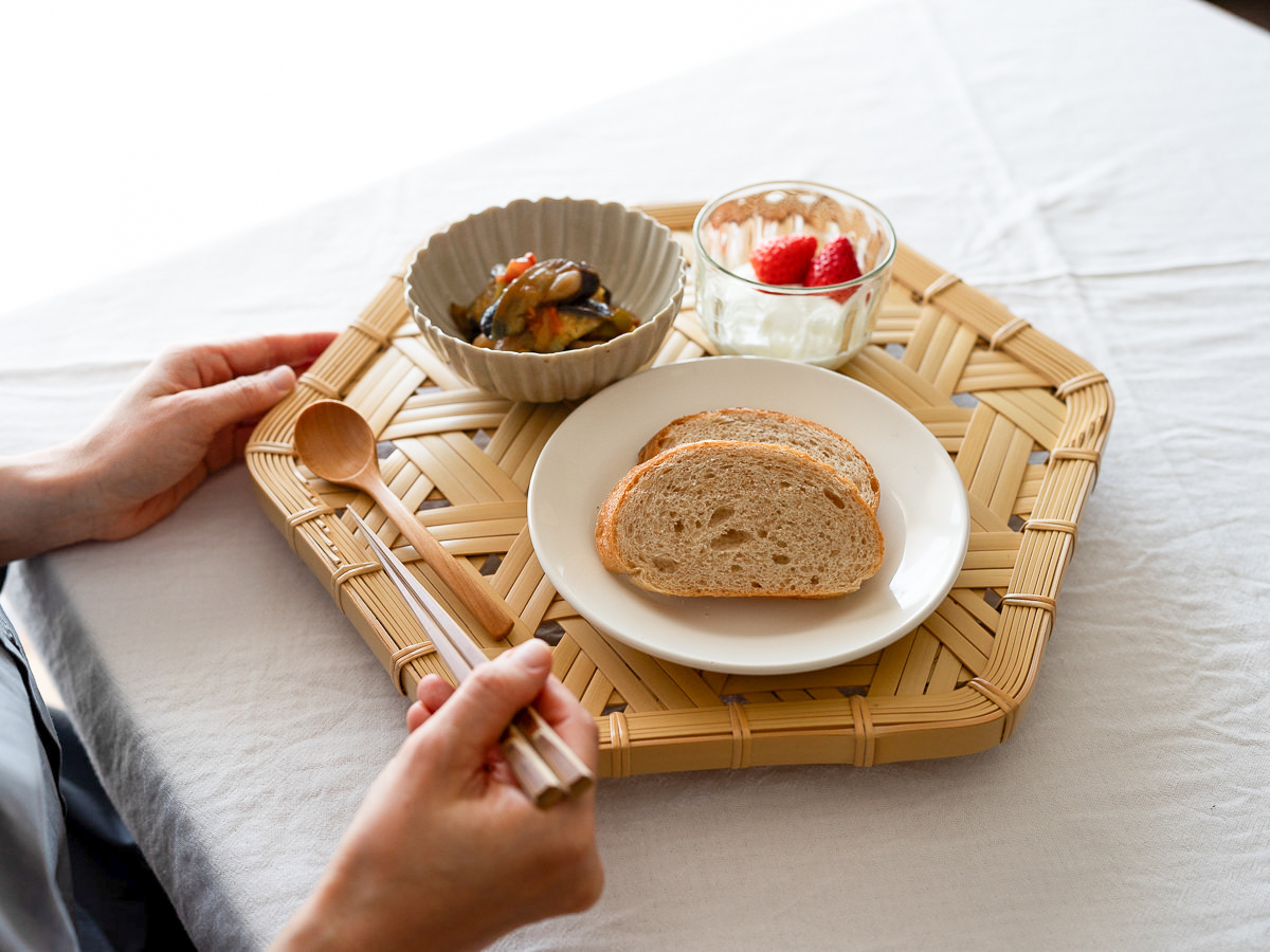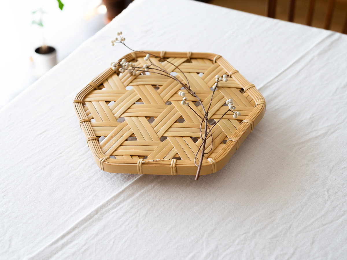こちらは白竹-しろたけ-でつくられた、六角盆-ろっかくぼん-です。