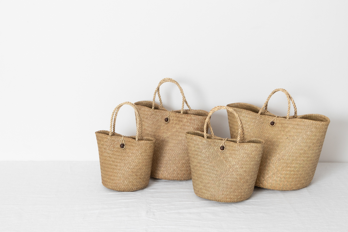 若い世代の編み手が少ないながらも、今、改めてタイ国内でも、こうした自然素材製品の良さが見直され、若い人たちがかごを手に取るようになってきているとのこと。