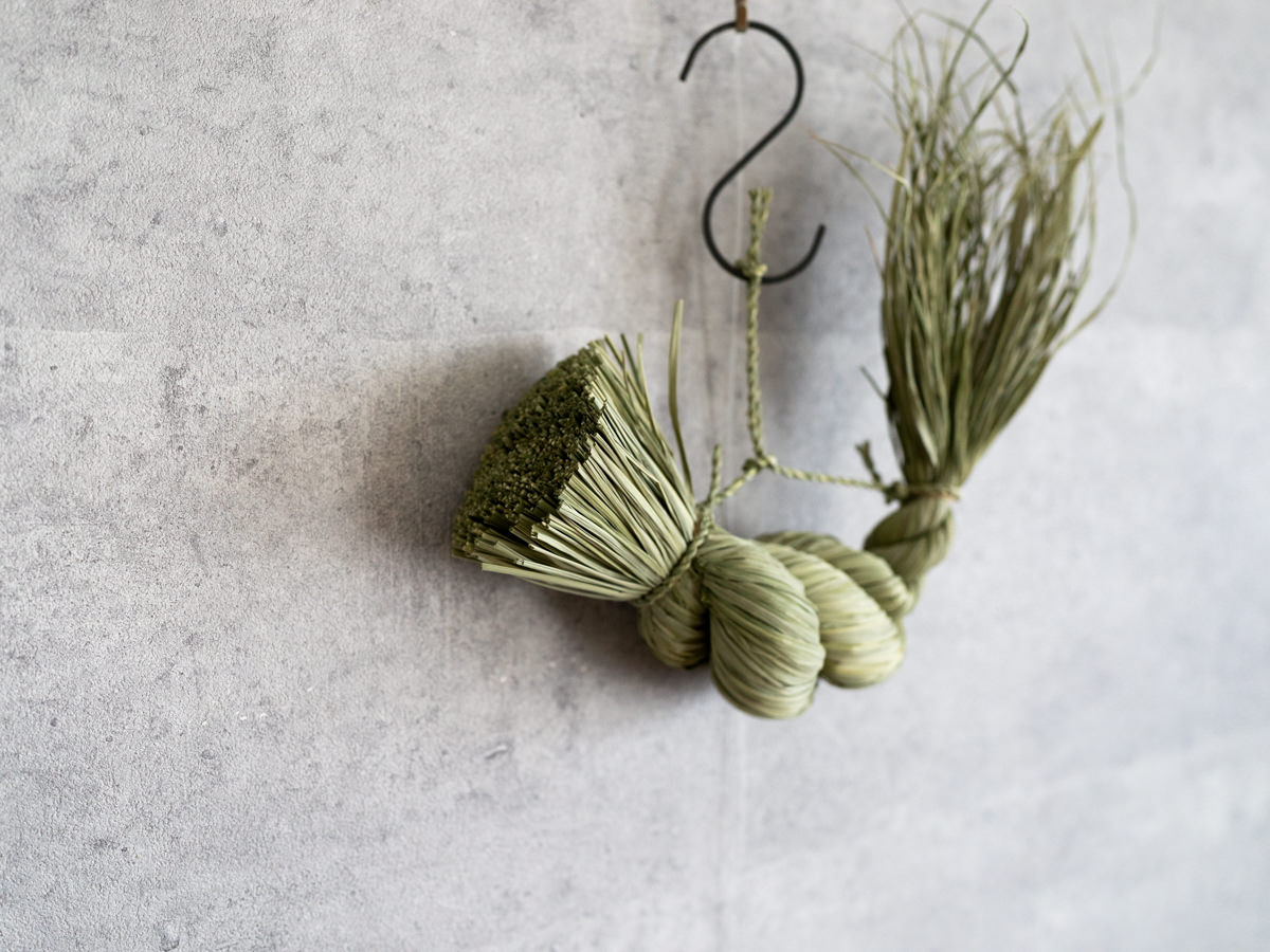 こちらで紹介するしめかざりは、長野県の南部でとれた「稲わら」をつかい、地元で作られたものです。作り手の方々は、稲わらの栽培から収穫、しめかざりの製作にいたるまで一貫して手掛けられています。