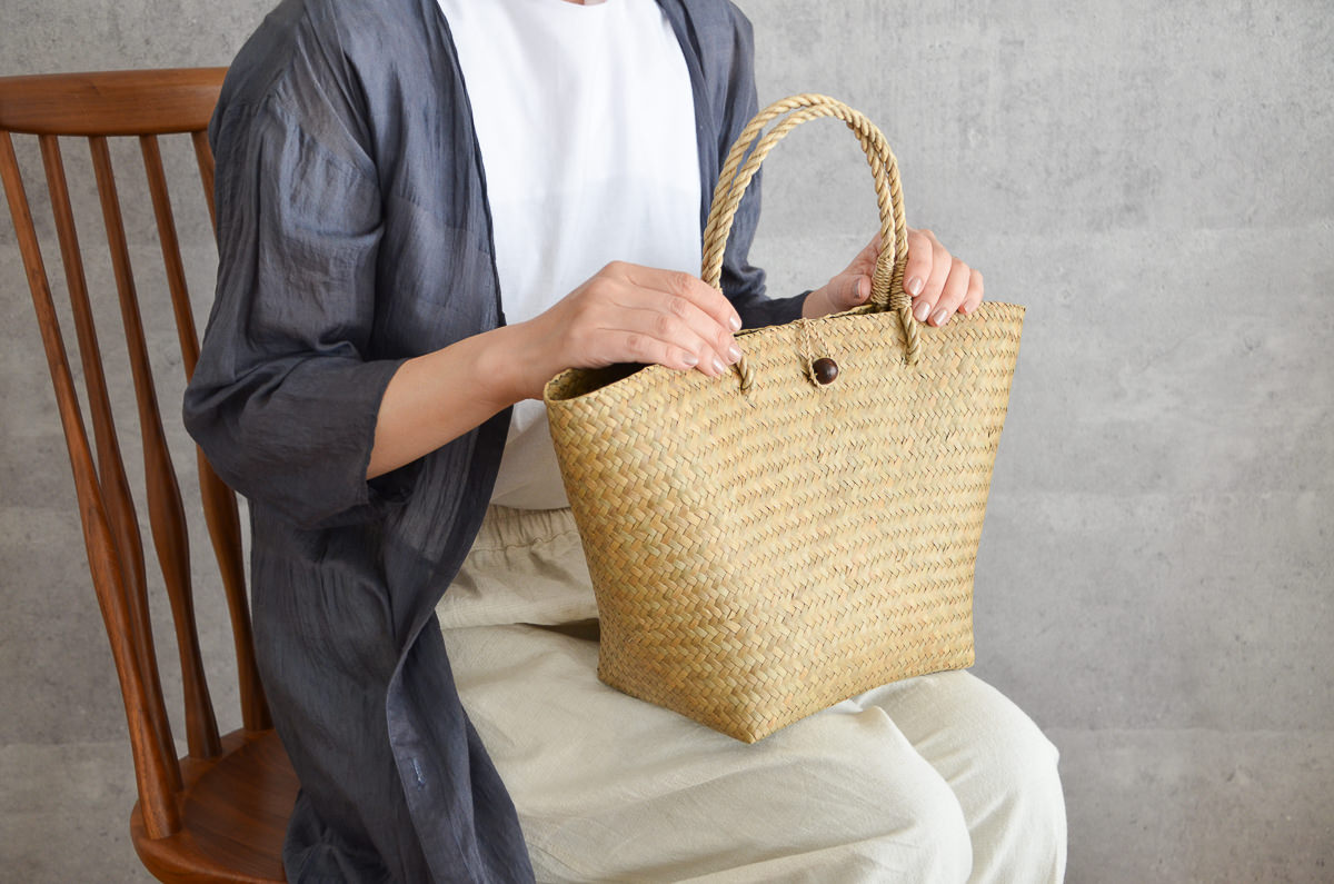 こちらのページでは、「カチュー」製のかごバッグ、持ち手の短い「手提げ」と長めの「ショルダー」の2タイプをご紹介します。