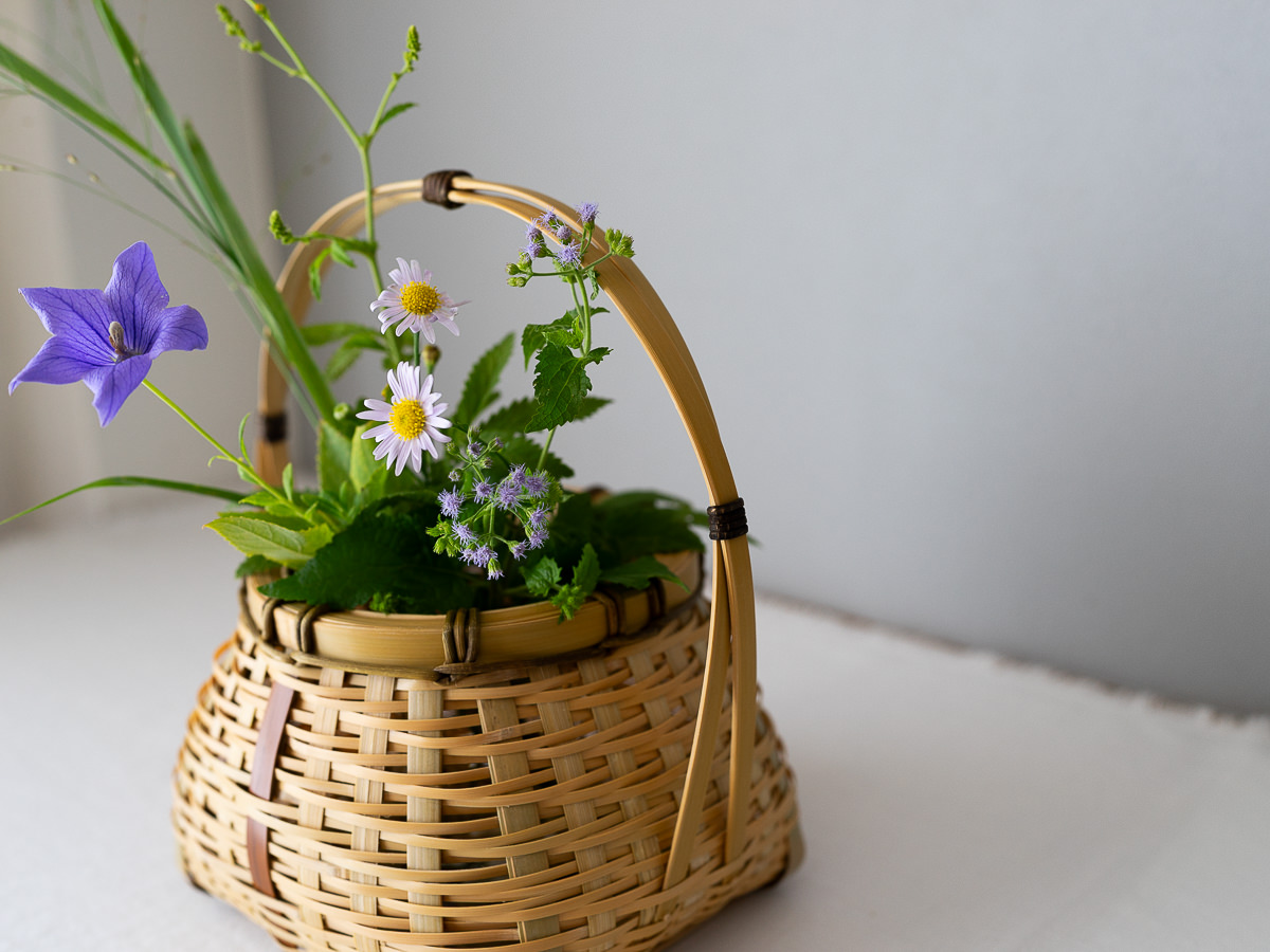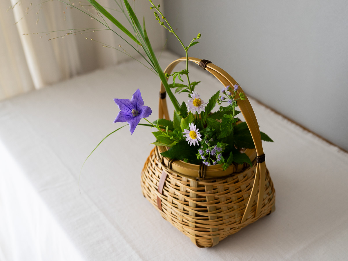静かな時間にじっくりとかごと花を見つめ、愛でたくなる。