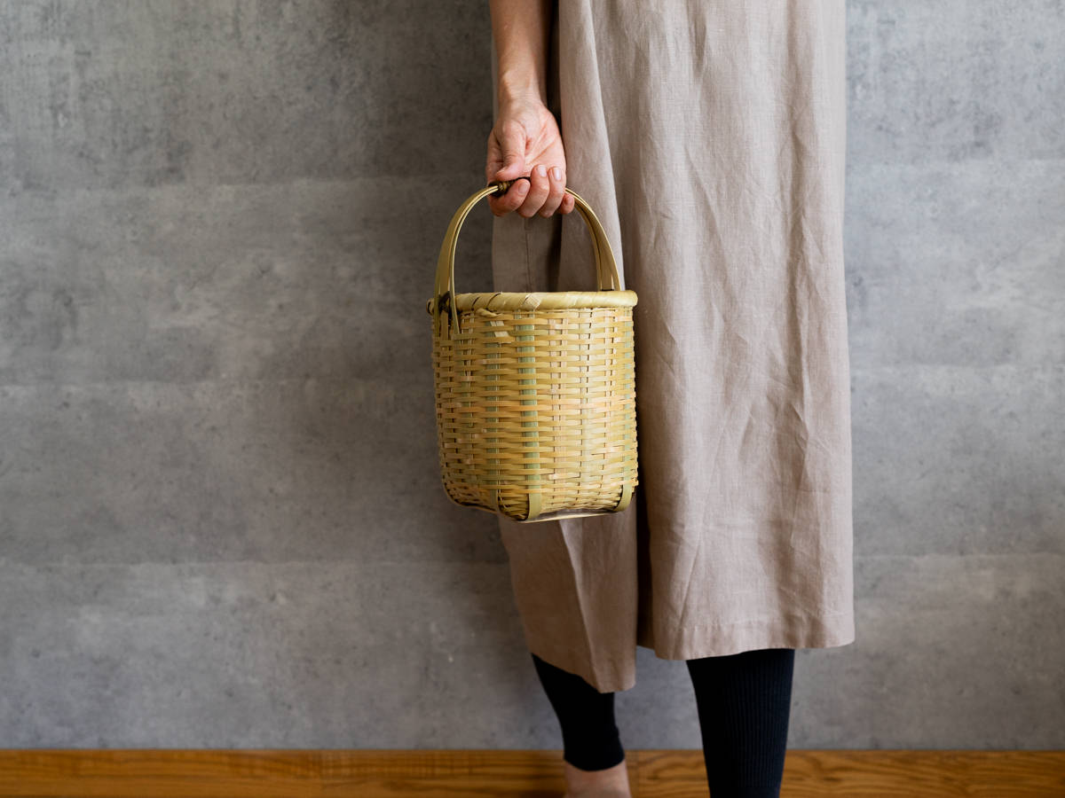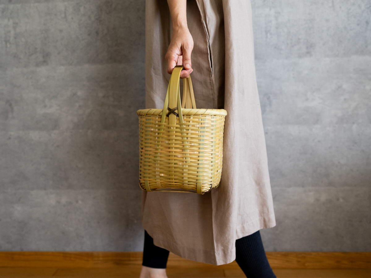 こちらは「青竹-あおたけ-」に“みがき”をかけたひごで、編まれたバスケットです。