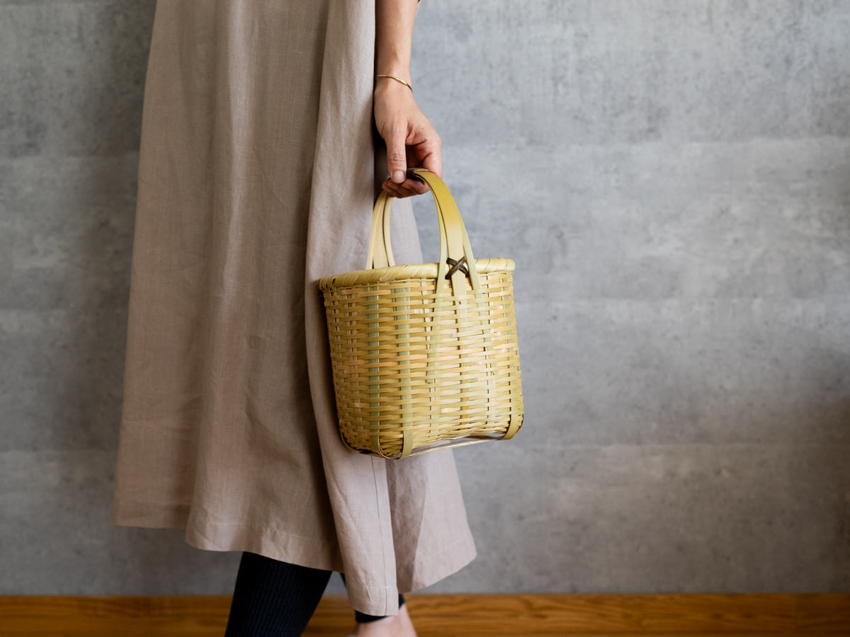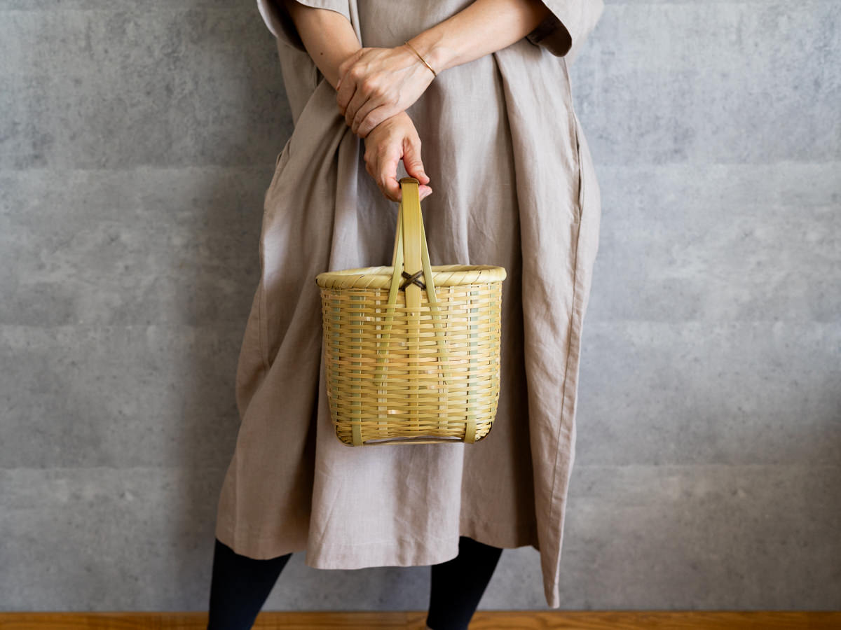 こちらは「青竹-あおたけ-」に“みがき”をかけたひごで、編まれたバスケットです。