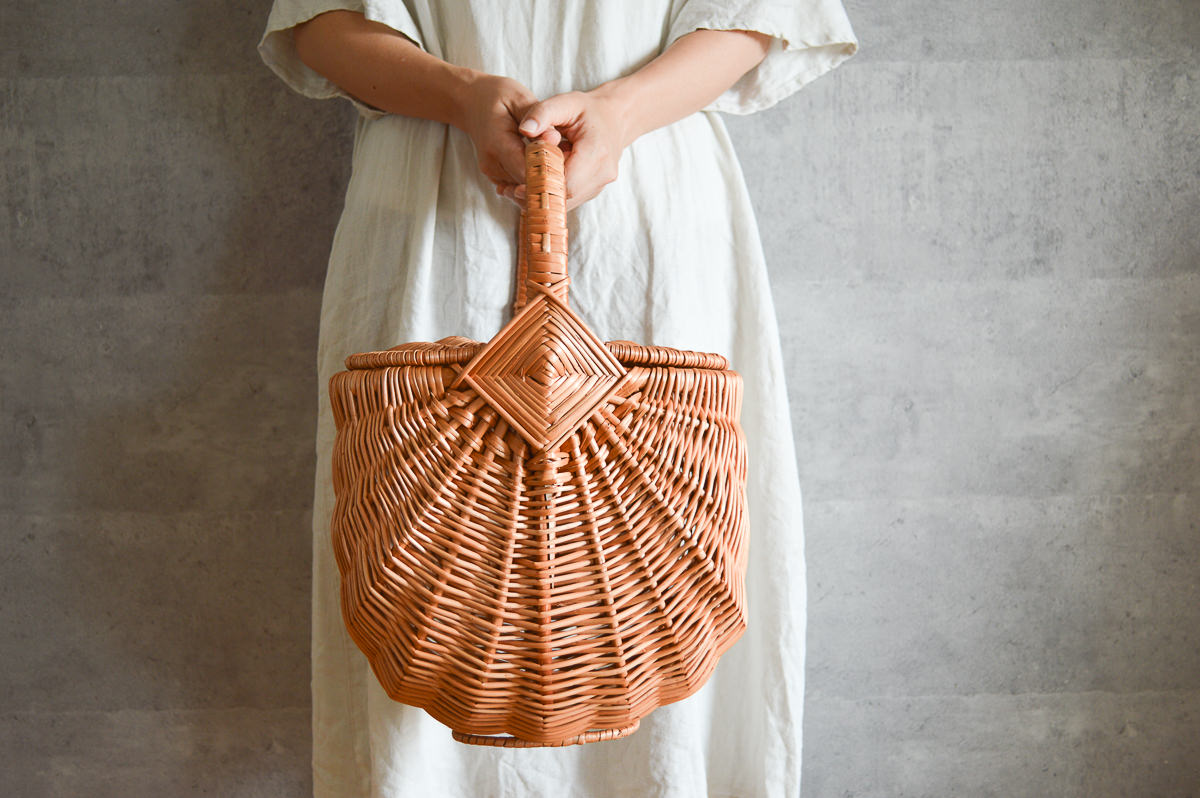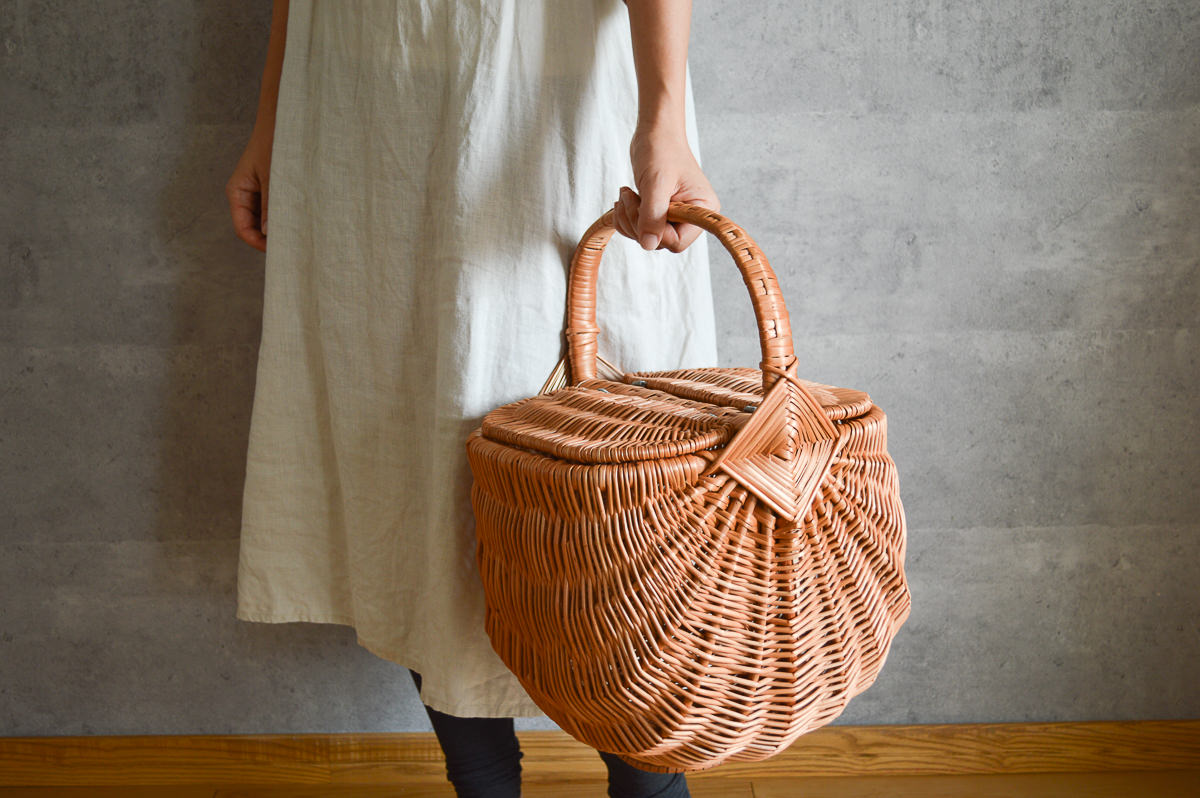 両サイドから開く蓋がついている、特徴的なバスケットをご紹介します。