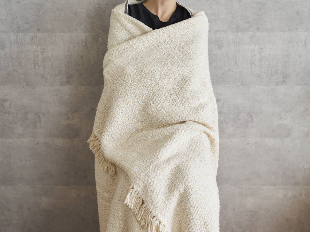 ゆっくりとワッフル状に織った、オリジナル生地のストールをご紹介します。