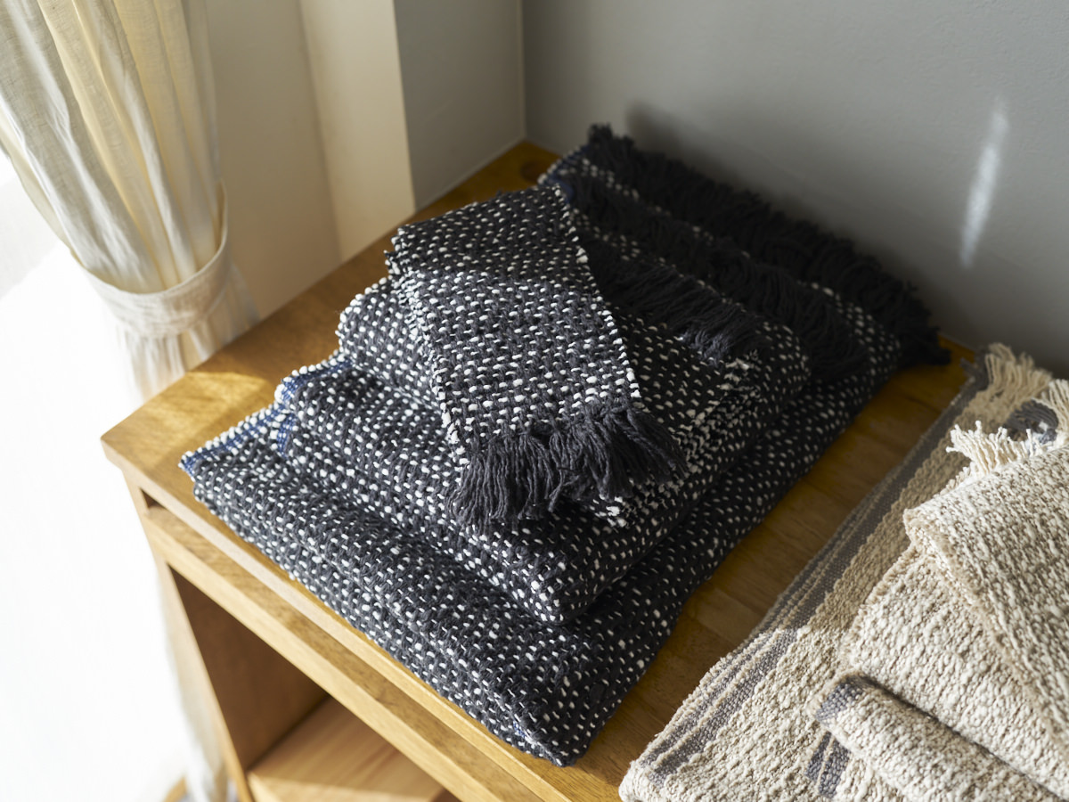 たて糸とよこ糸の洗練された配色と、ぬくもりのある風合い。