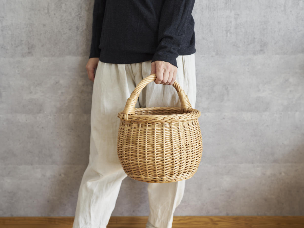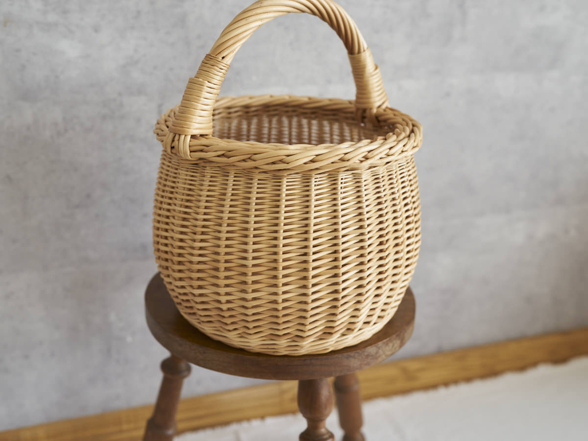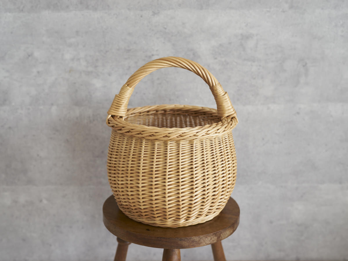 こちらは、やわらかい丸みのあるかたちがかわいらしいバスケットです。