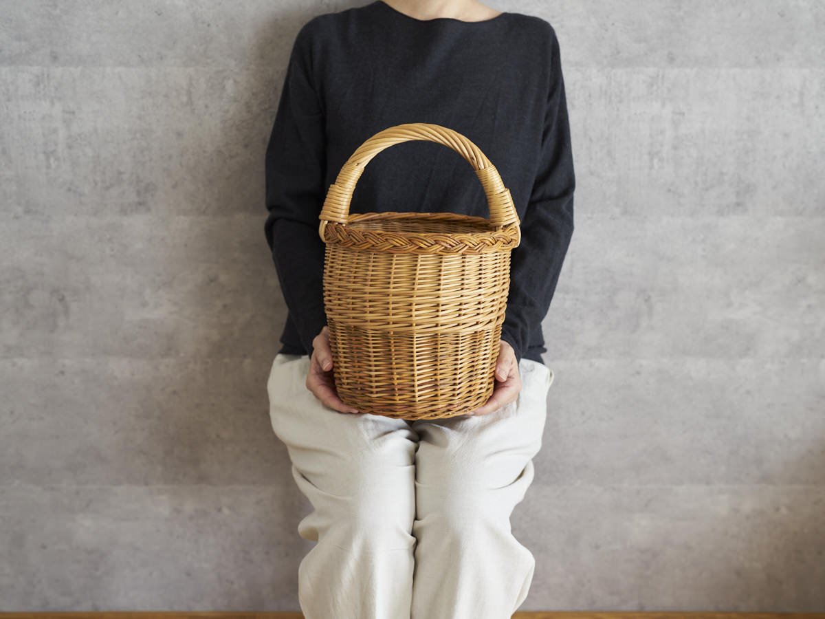 こちらは、やわらかい丸みのあるかたちがかわいらしいバスケットです。