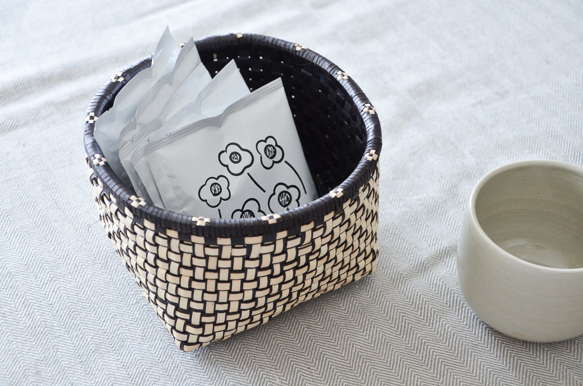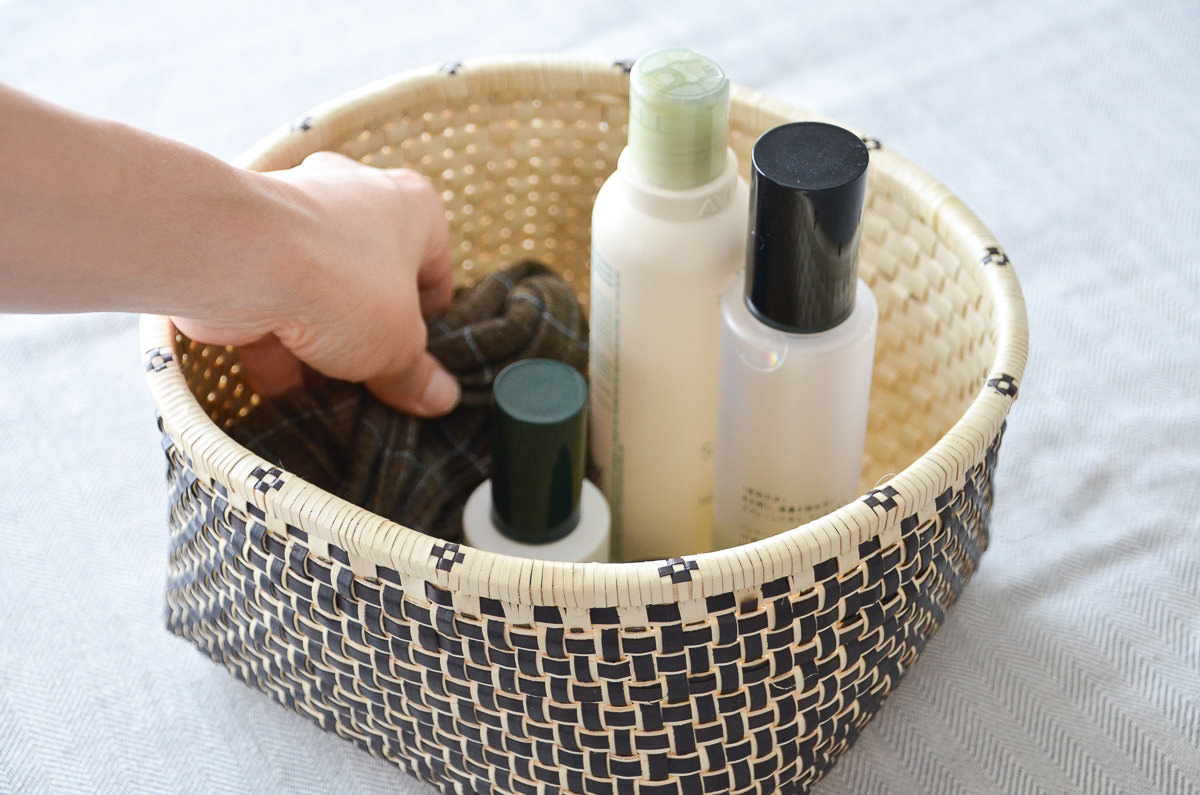 ポンポンとあれこれ入れても受け止めてくれるようなオープンバスケットです。