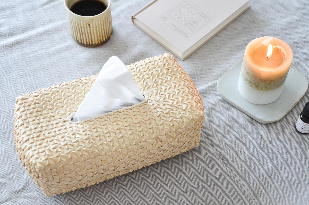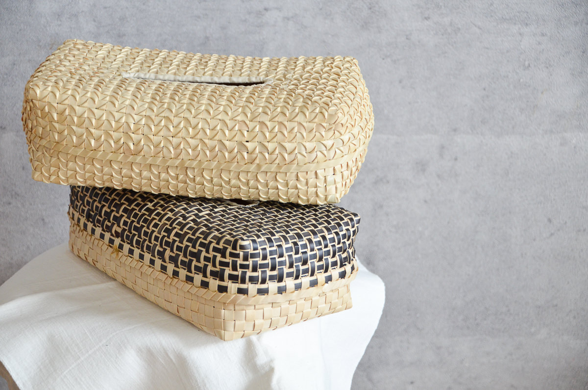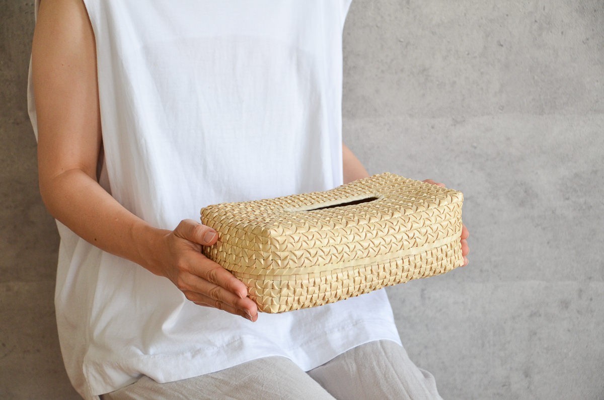 こちらは、パーム(ヤシ)の葉を素材にして作られたティッシュケースです。