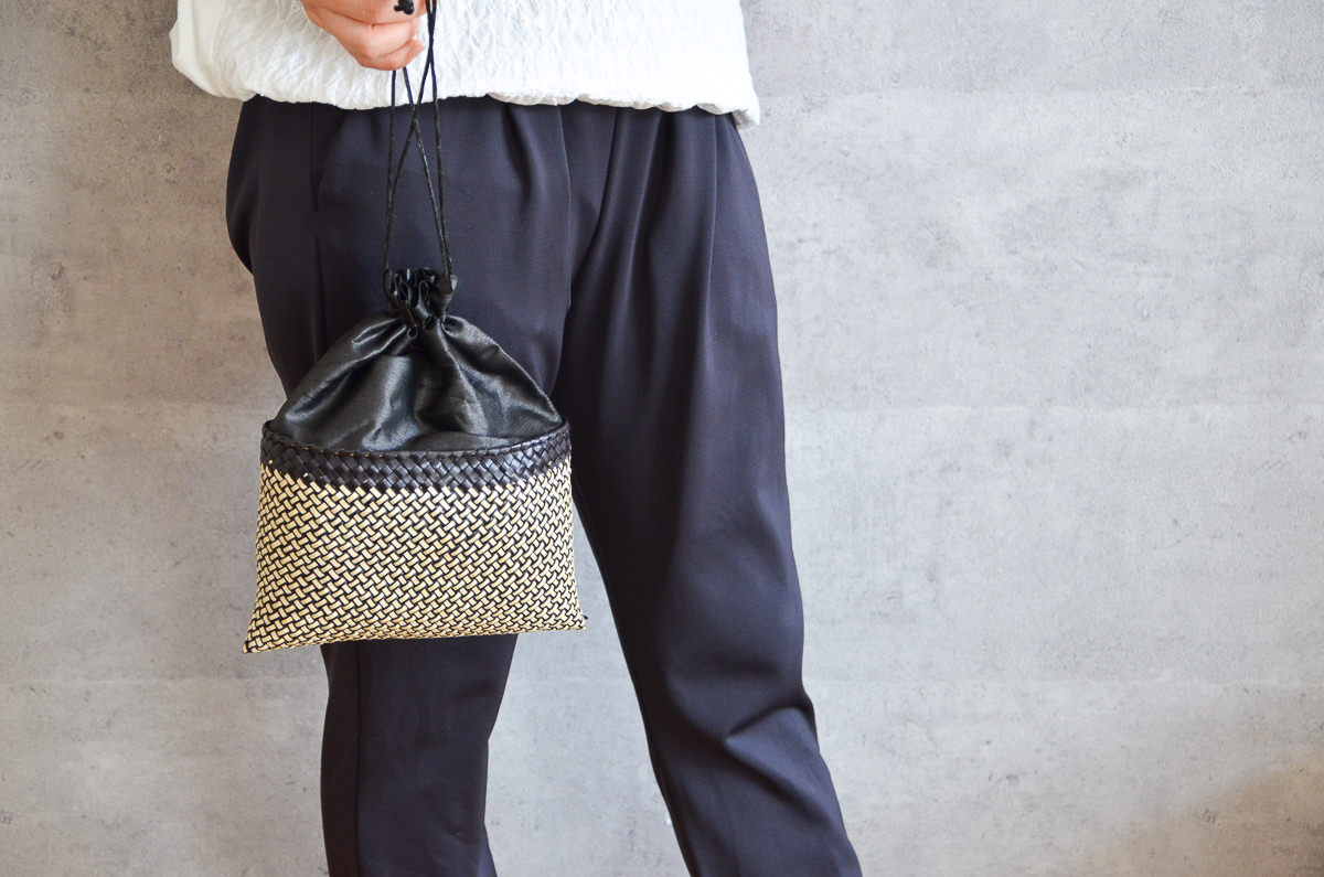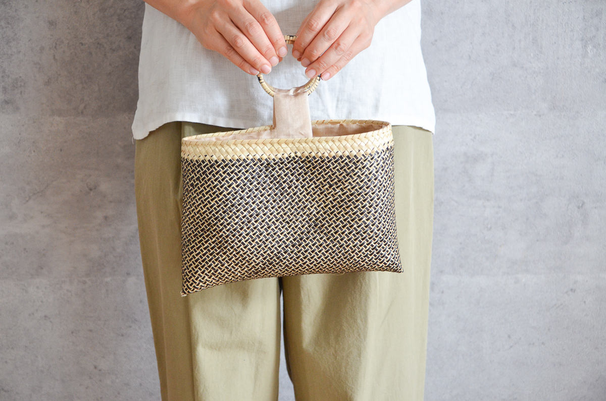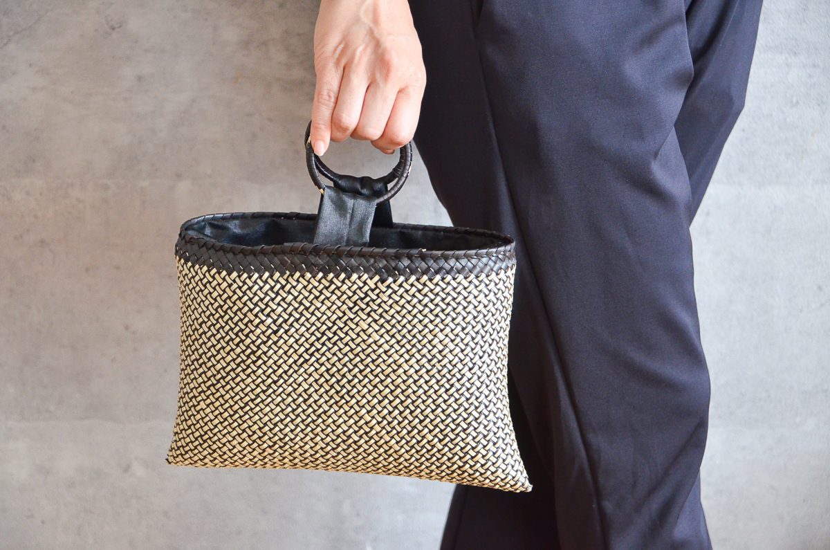 こちらは、パーム(ヤシ)の葉を素材にして作られたイブニングバッグです。