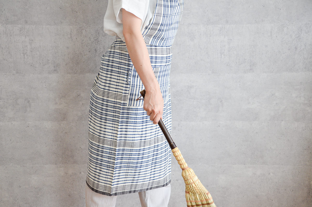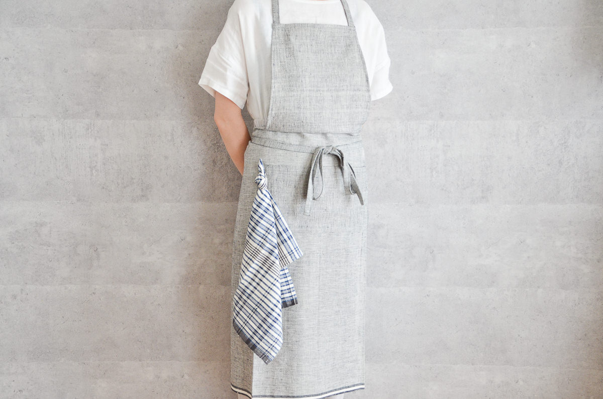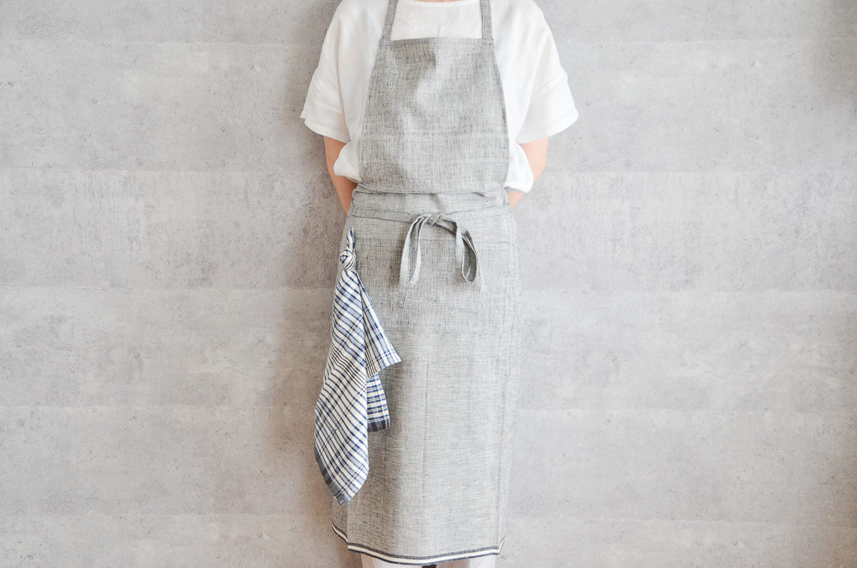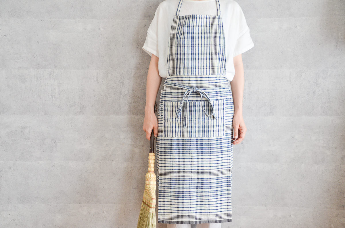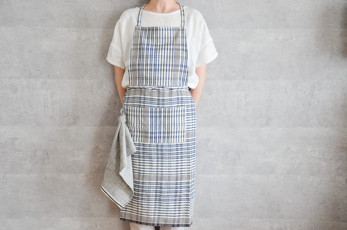 こちらは、インドの「カディ」を素材にして作られた、ホルターネックタイプのエプロンです。