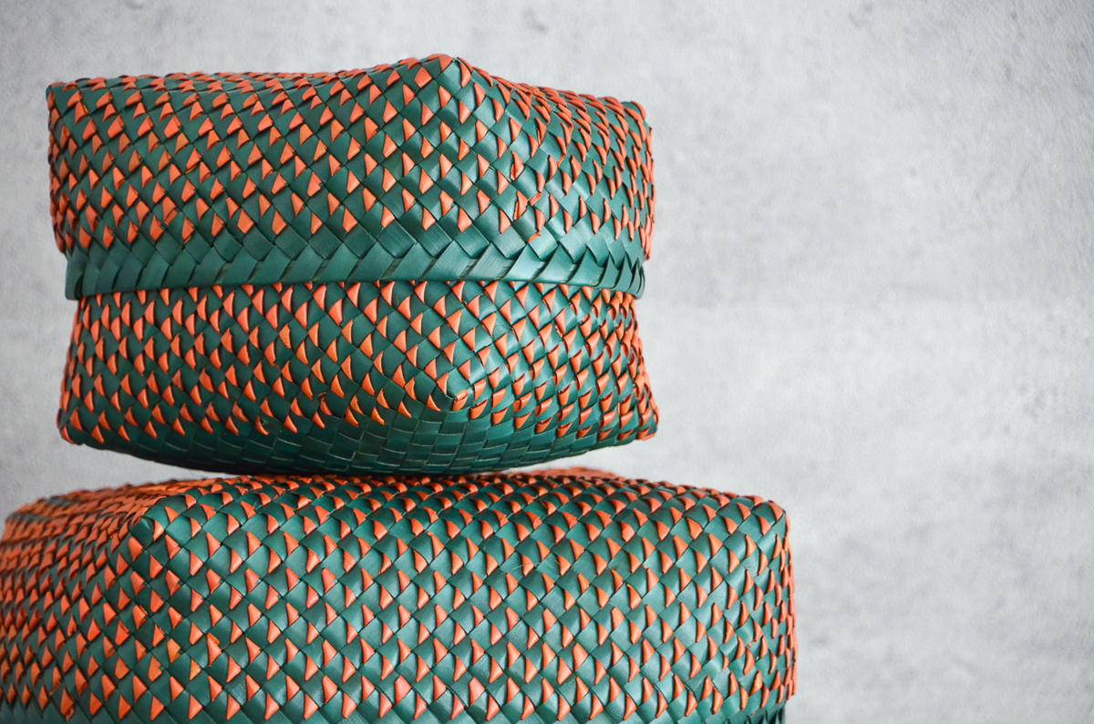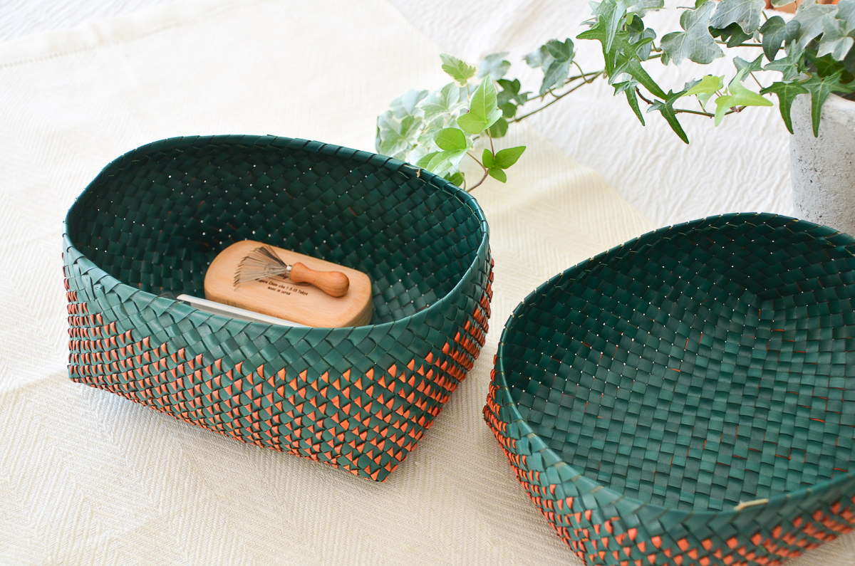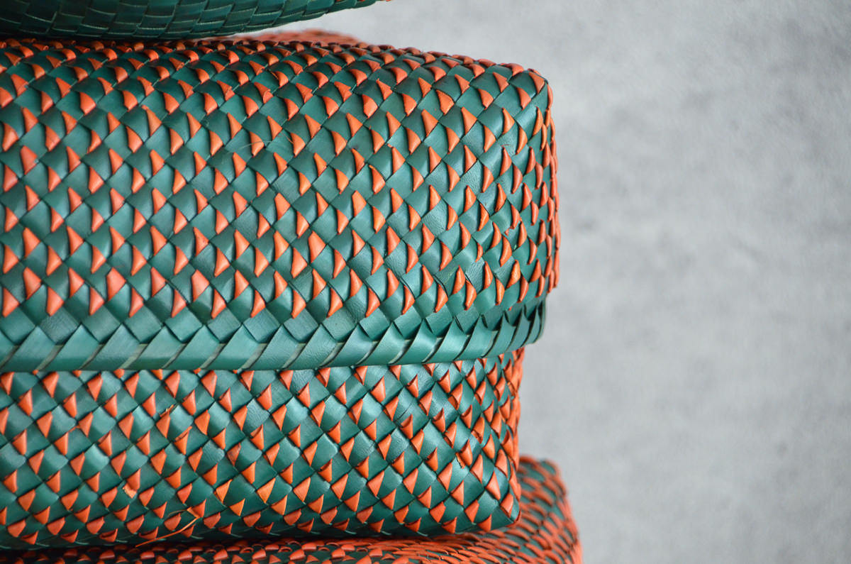 伝統的に作られてきた、パーム(ヤシ)の葉を使って編まれたバスケット。