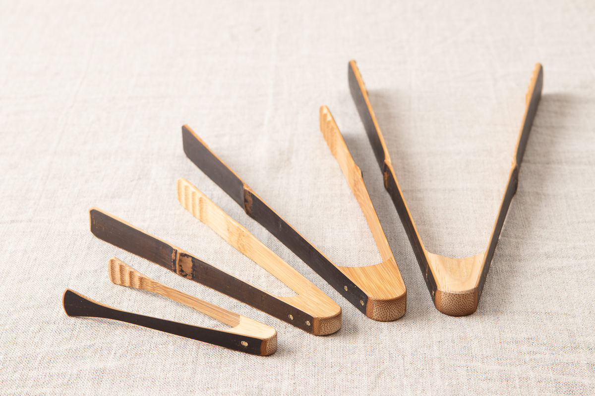 こちらはその炭竹で作られたトングです。全部で4サイズあります。