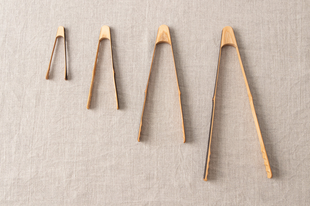 こちらはその炭竹で作られたトングです。全部で4サイズあります。