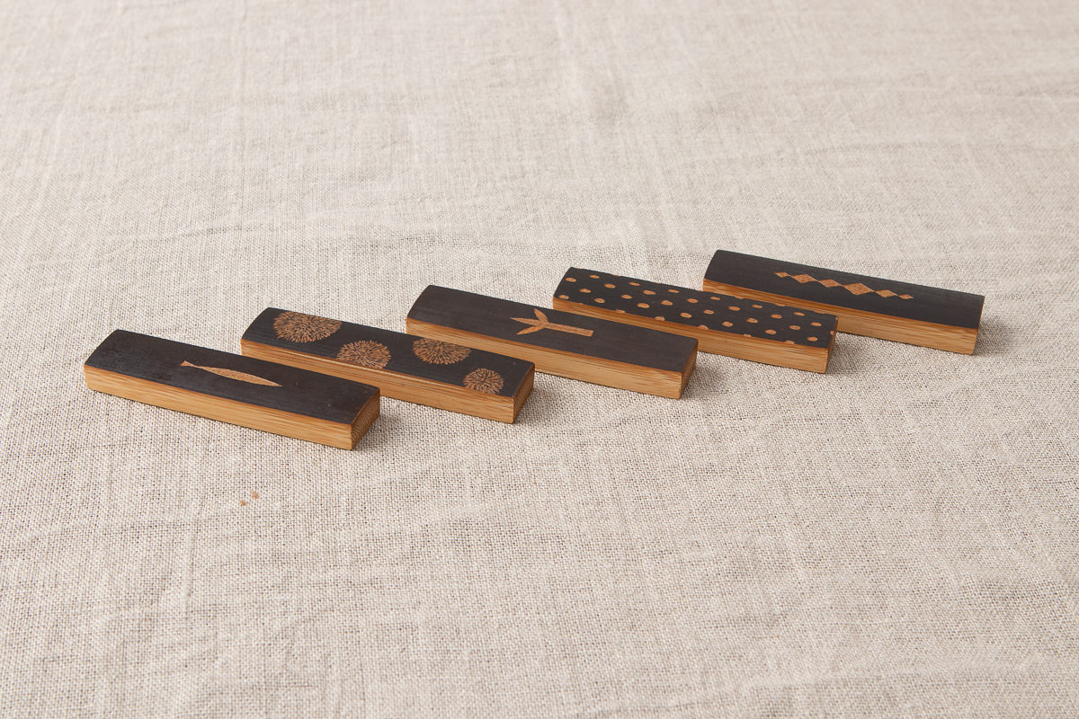 卓上にあっても存在感のある炭竹の箸置き、ぜひお好みのカトラリーを載せてみてください。