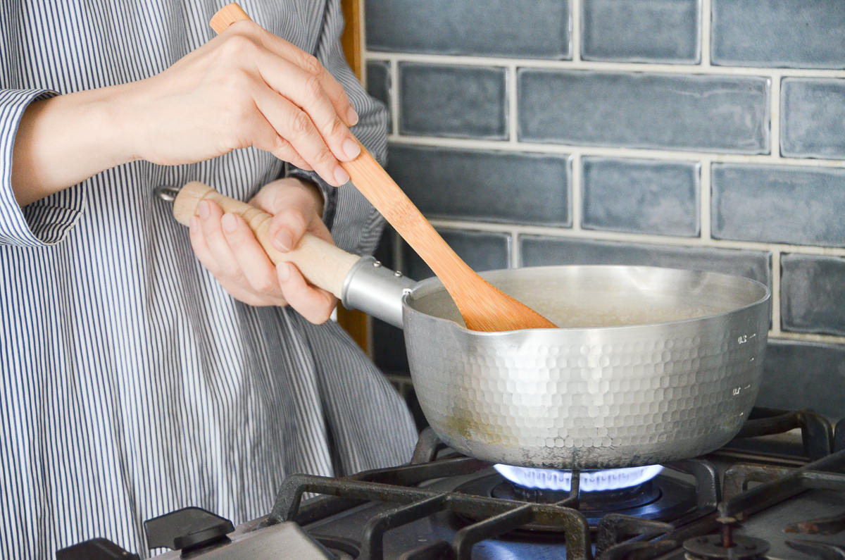 こうすることで、焦げ付きやすいとろみのあるものを底や端までしっかりかき混ぜることができます。ジャムやソース作りで混ぜるとき、カレーやシチューをかき回すときなどに重宝します。