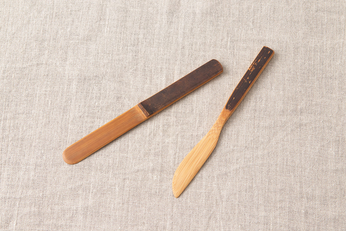 こちらは、その炭竹で作られた「万能へら」と「バターナイフ」です。