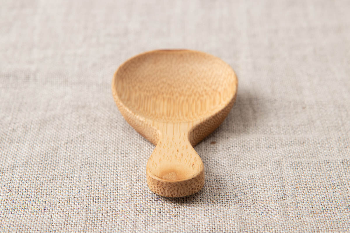 さじの持ち手に近い部分は、茶さじを置いたときに安定するように平らに整えられています。茶葉を掬う用途でお使いでしたら、都度、水で洗う必要はなく、