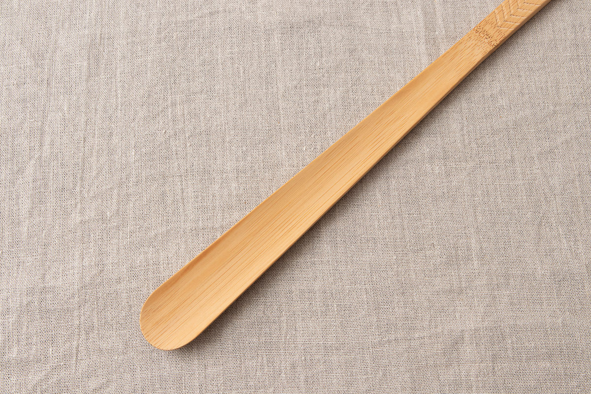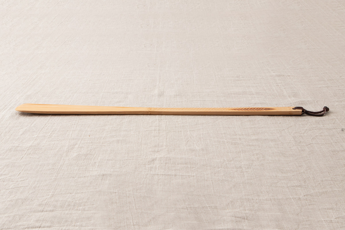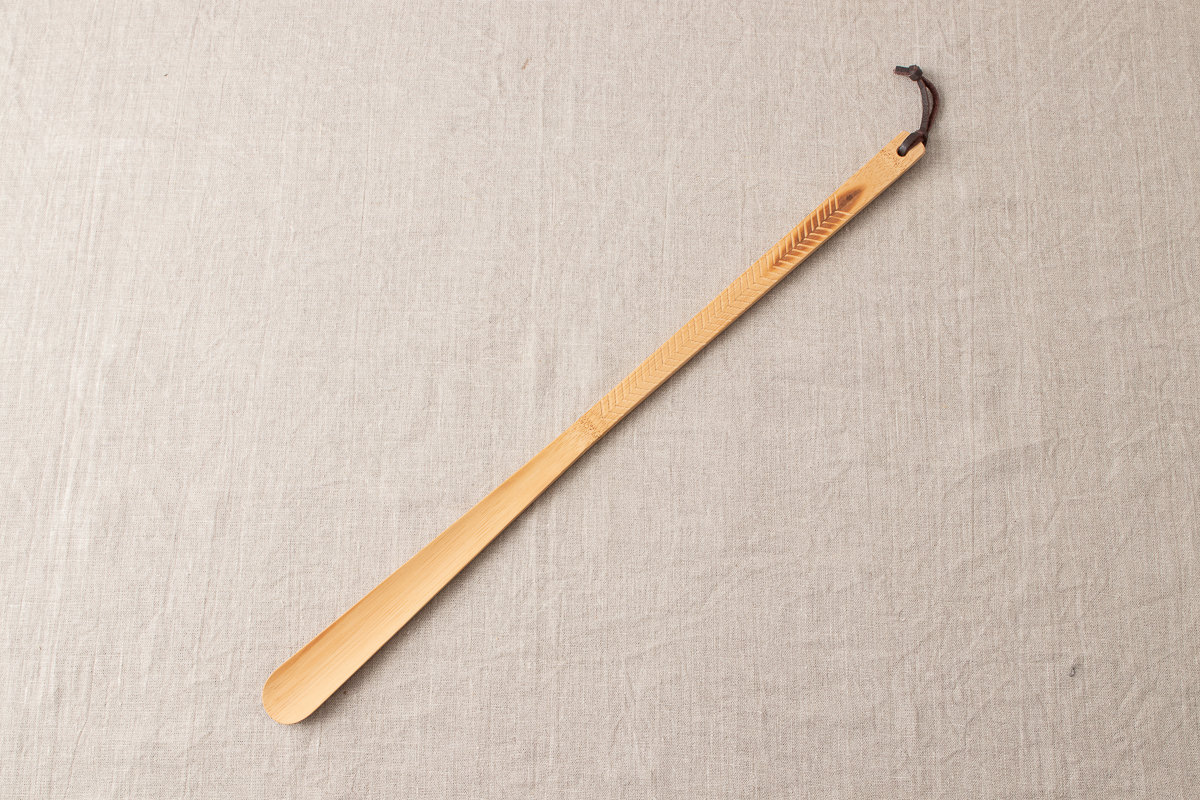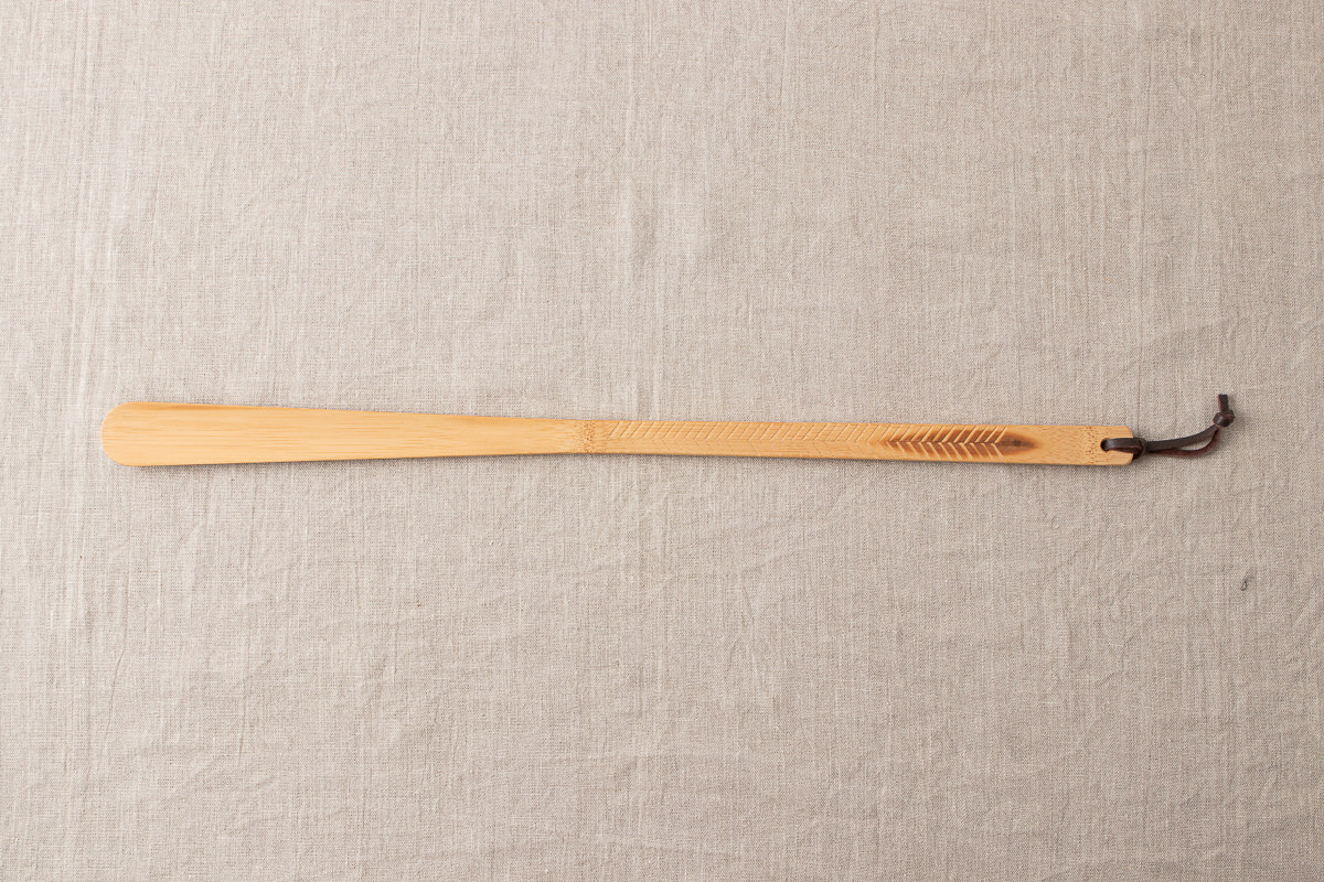 靴べらの柔らかなカーブと、さらっとした竹の質感が、優しくかかとに寄り添ってくれます。