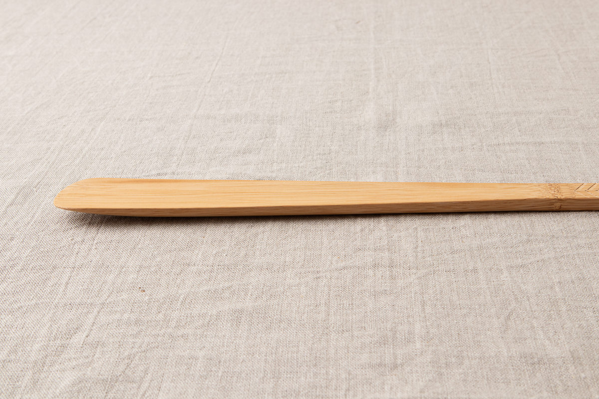 足を靴へ入れるときに足も靴も傷めることなく、スムーズにすべらせるのが靴べらの役目ですが、こちらのように縦の繊維がとおった竹製は、まさに適材といえます。