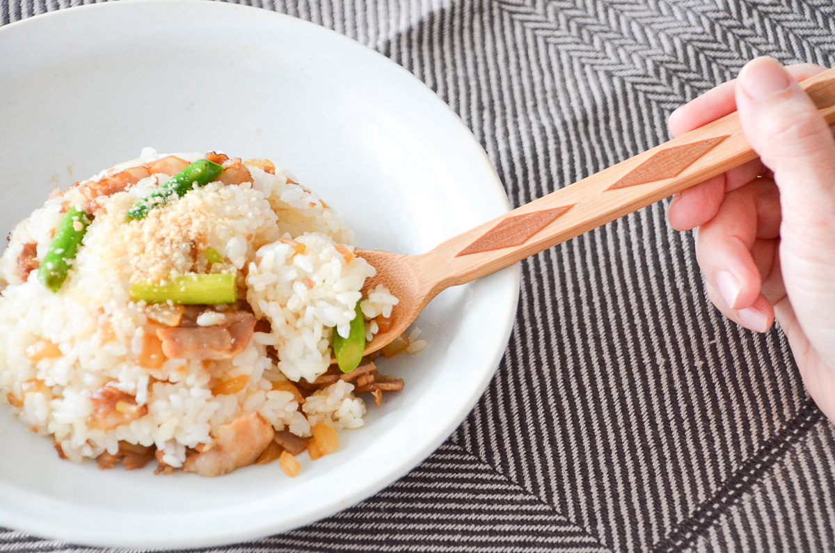チャーハンやリゾット、お粥などのご飯ものに。スープの汁を掬うこともできます。