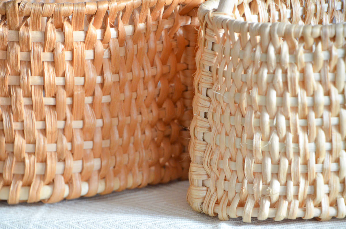 左:室内で収納かごとして使い、5年ほど経過したもの/右:編まれてから半年ほど経ったものいずれかお好みのタイプをお選びください。