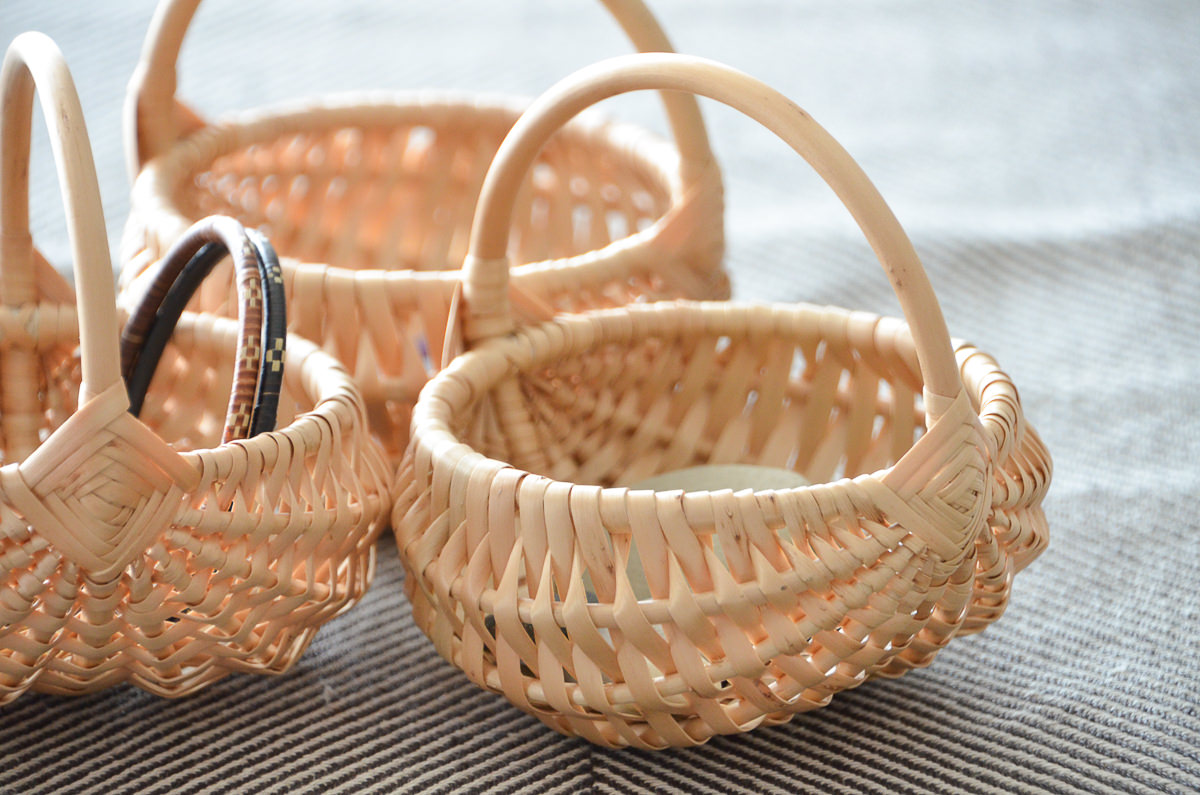 伝統的にその地で作られつづけてきたかごやざるなどの編み組み品は、身近に自生する植物をつかって作られるのが基本です。