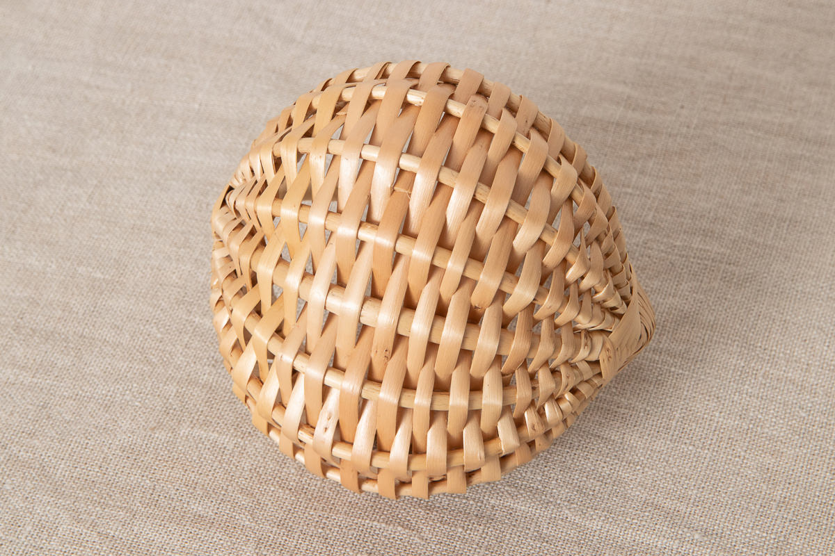 いずれのタイプも、大きさやかたちはほぼ同じです。やなぎの芯を横の基軸にして、裂いた状態にしたひごを編みこみながら作られています。