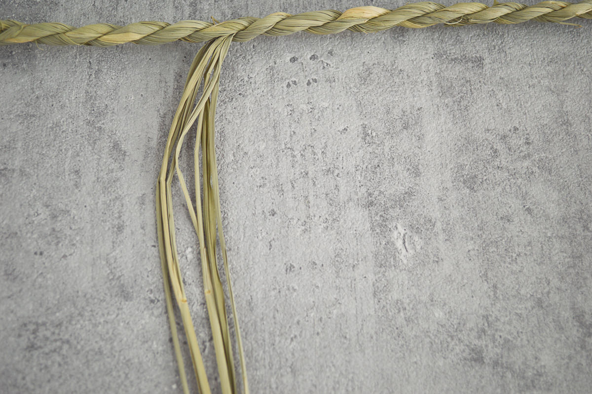 ナイサゲの縄は綯ってありますが、こちらの縄は三つ編みで仕上げています。