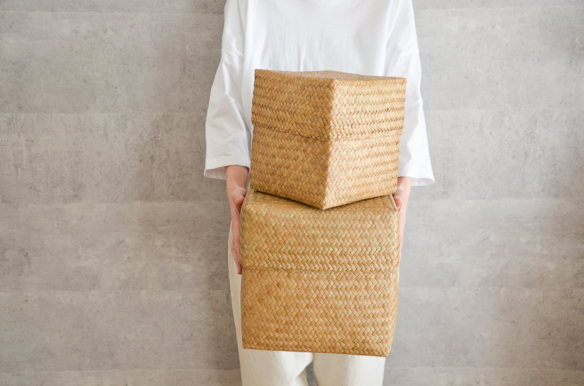 若い世代の編み手が少ないながらも、今、改めてタイ国内でも、こうした自然素材製品の良さが見直され、若い人たちがかごを手に取るようになってきているとのこと。