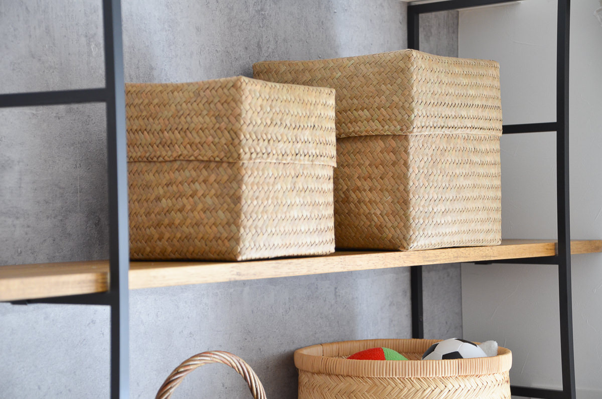 スリムな角型のかごは、並べて収納するのも良さそうです。