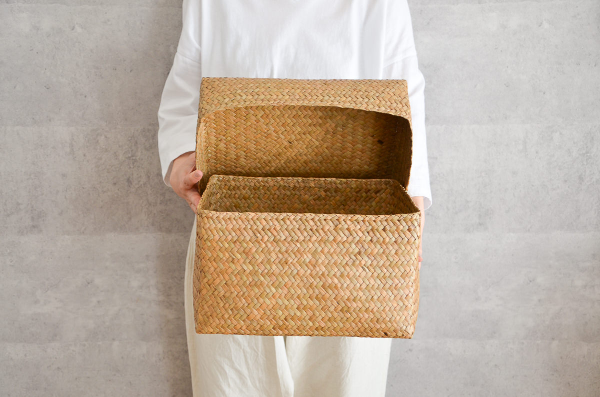 タイ カチュー コンパクト整理かご 蓋付き レクタングル S/M/L 3サイズ