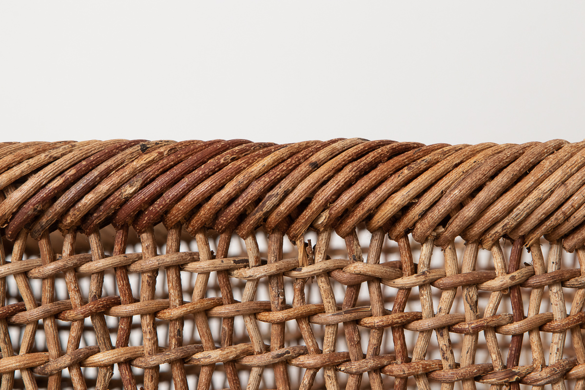 こちらは自然界での姿そのままの茶色い表皮がついた蔓で編んでいます。