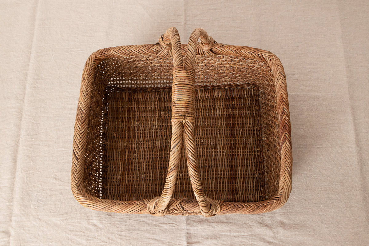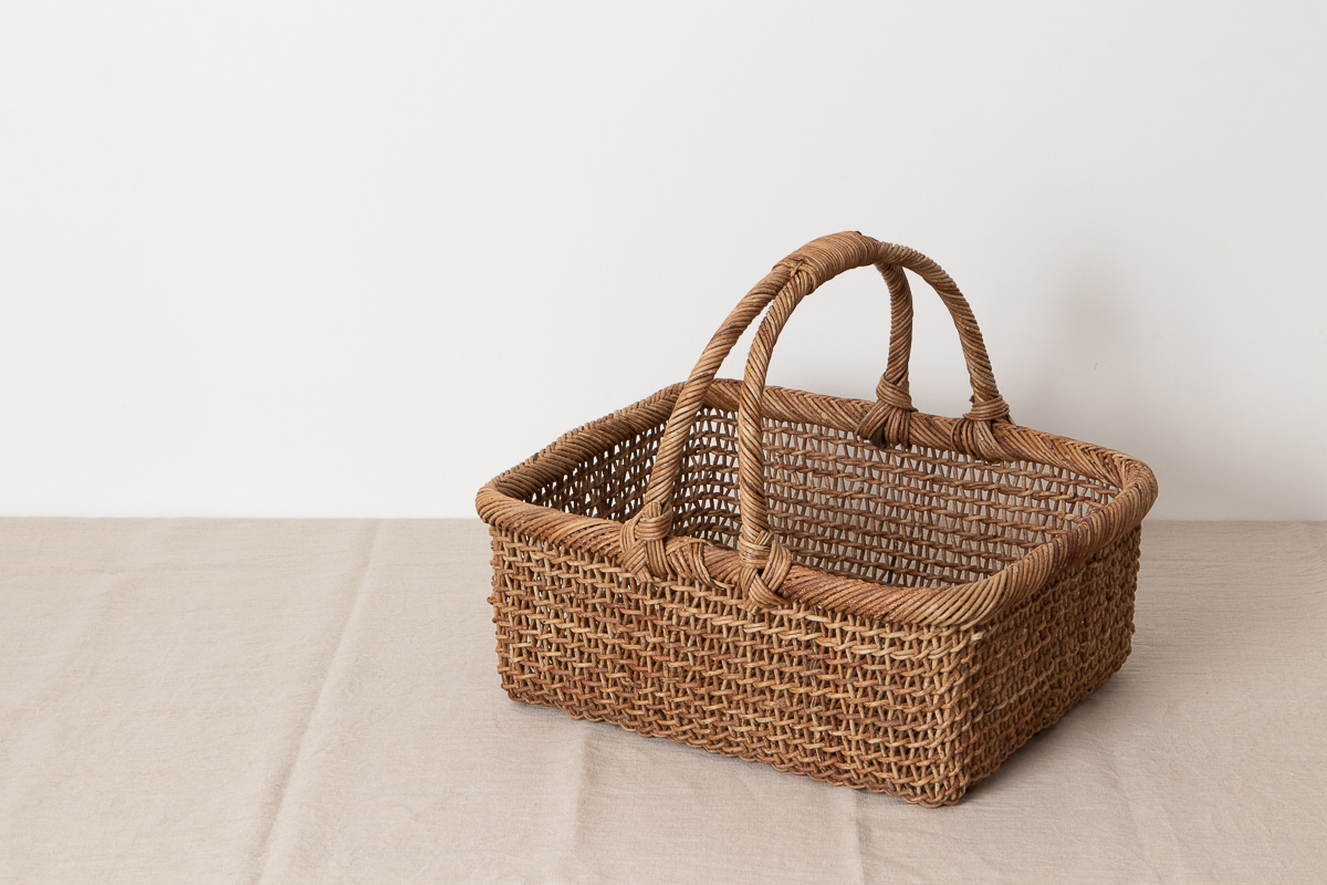 こちらはあけびの蔓で編まれた持ち手付きのかごです。