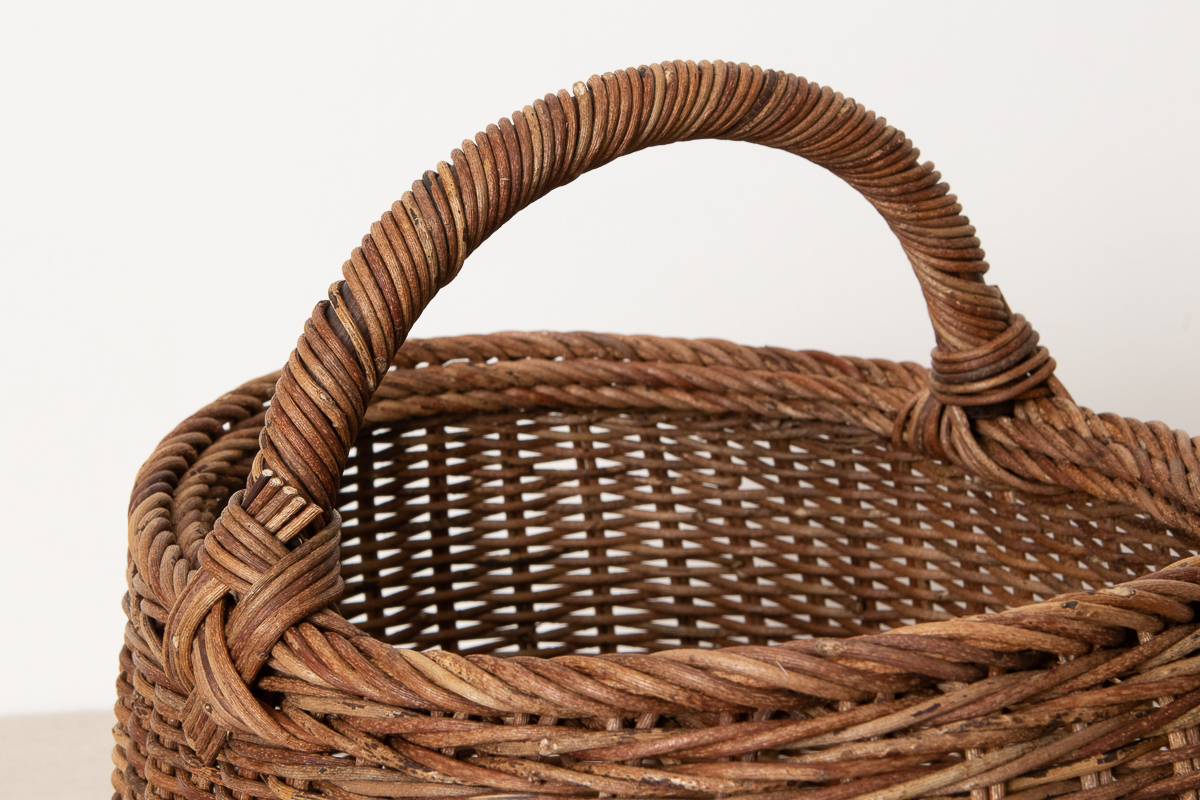 こちらは、あけびの蔓-つる-で編まれた、持ち手つきのかごです。