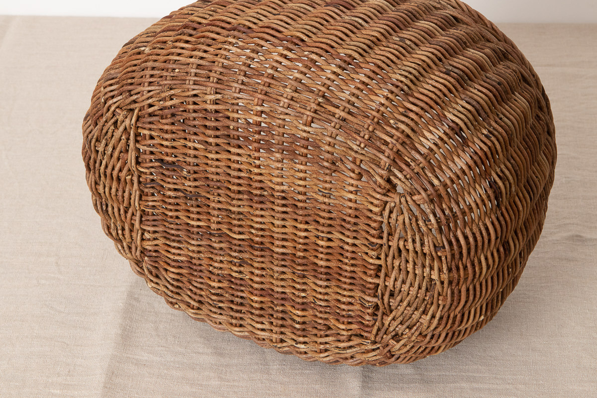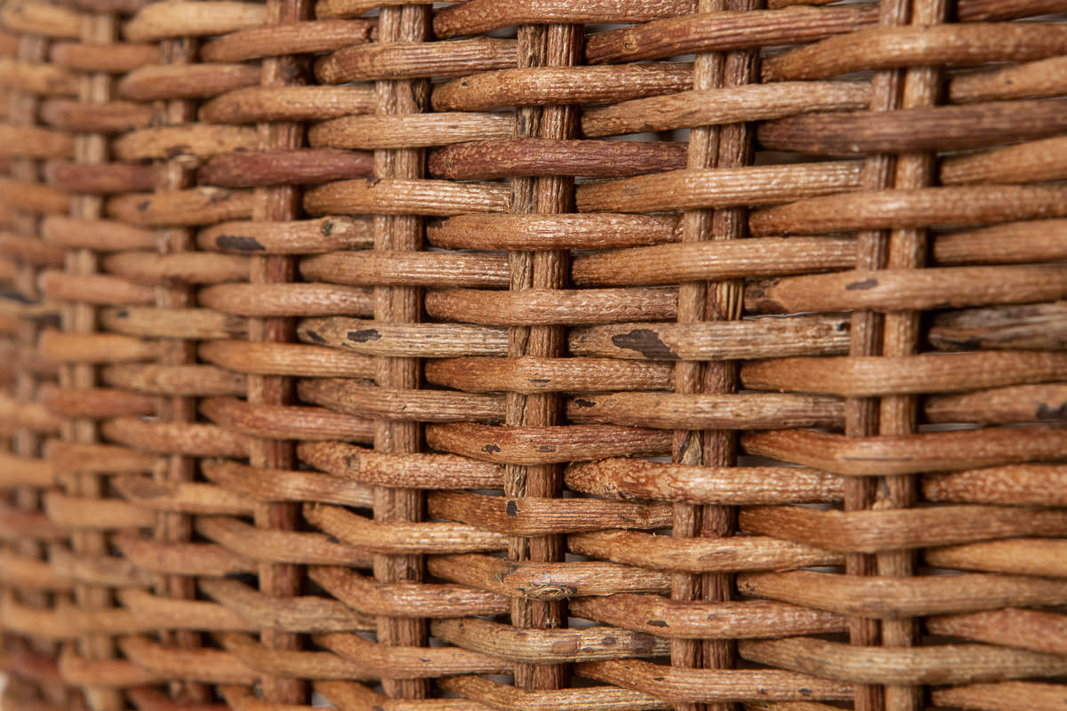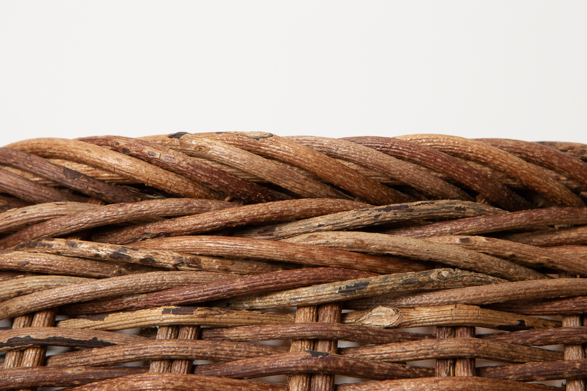 この表皮をむいたグレーがかった色の蔓で編まれるかごもあります。