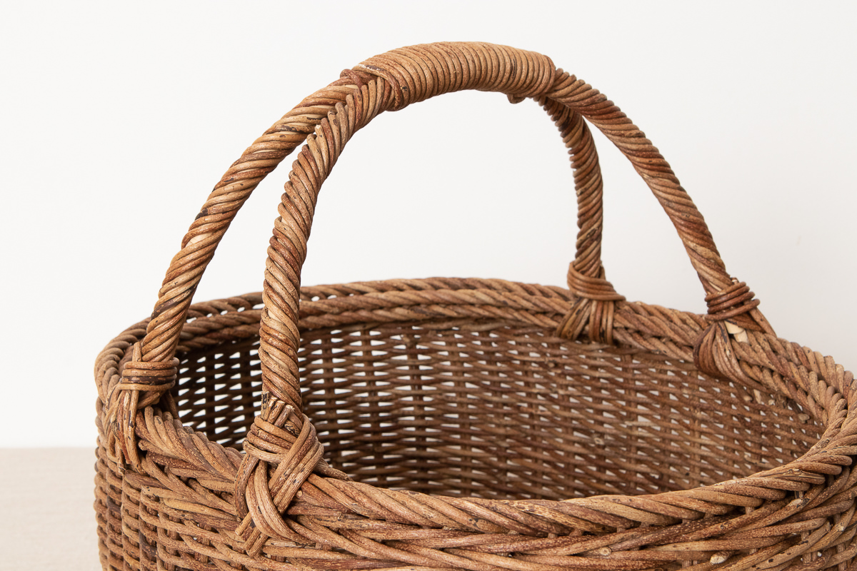 こちらはあけびの蔓で編まれた持ち手付きのかごです。