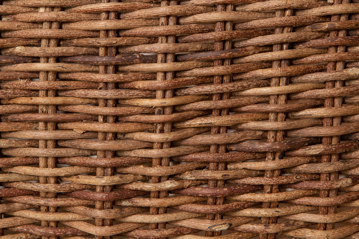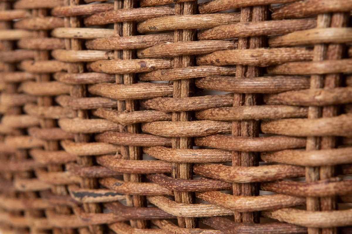 こちらは自然界での姿そのままの茶色い表皮がついた蔓で編んでいます。