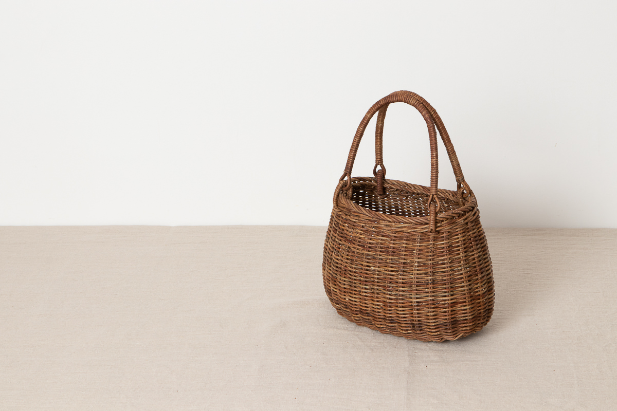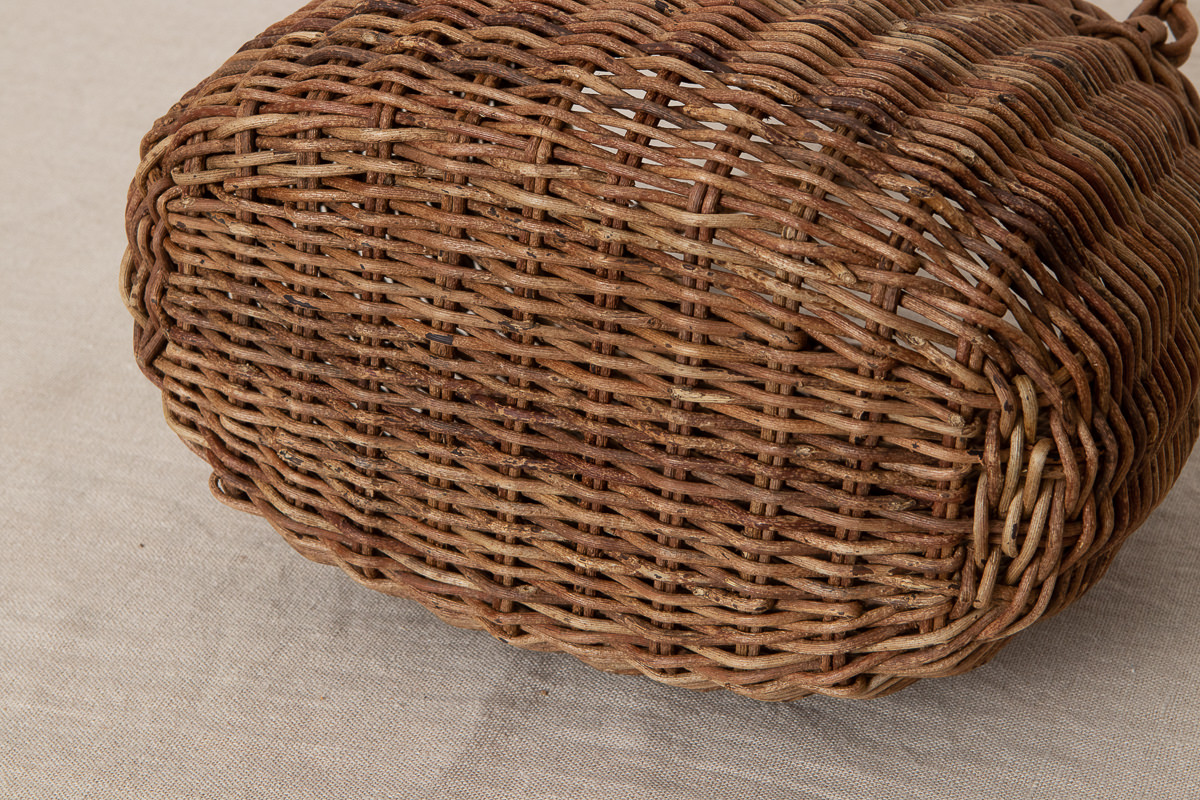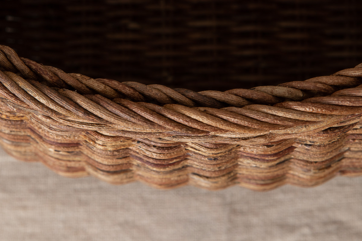 かごの下のほうにゆるやかな丸みのついたかたち。こちらは、「並編-なみあみ-」とよばれ、かごの目が詰まった編み方です。