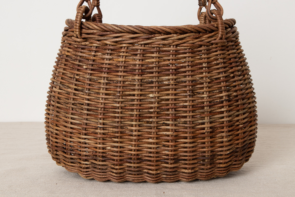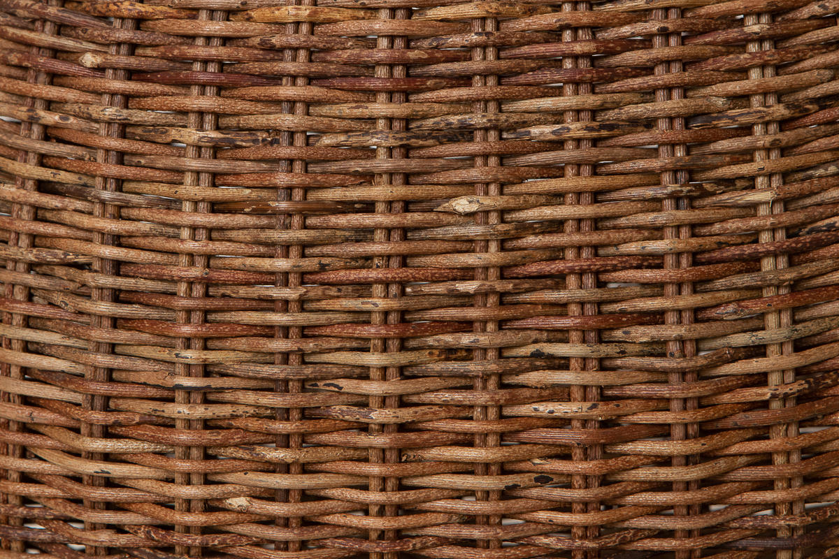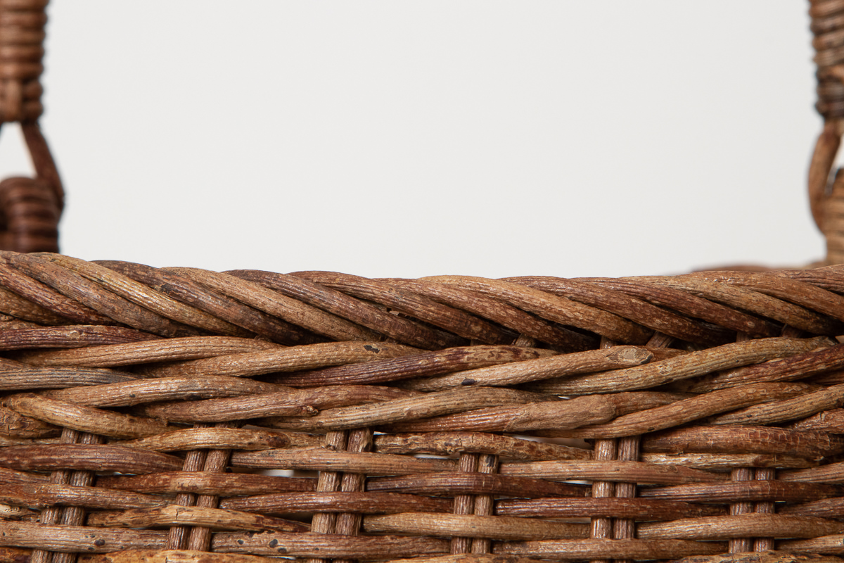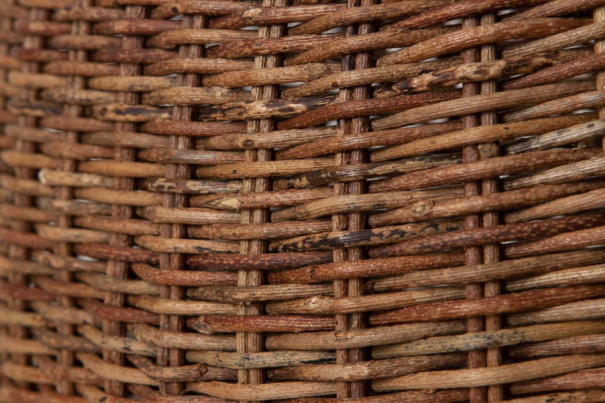 かごの下のほうにゆるやかな丸みのついたかたち。こちらは、「並編-なみあみ-」とよばれ、かごの目が詰まった編み方です。