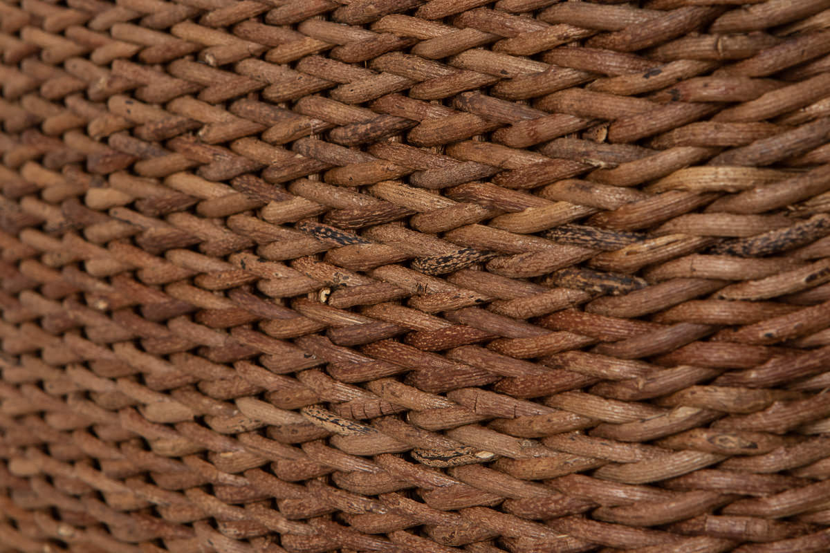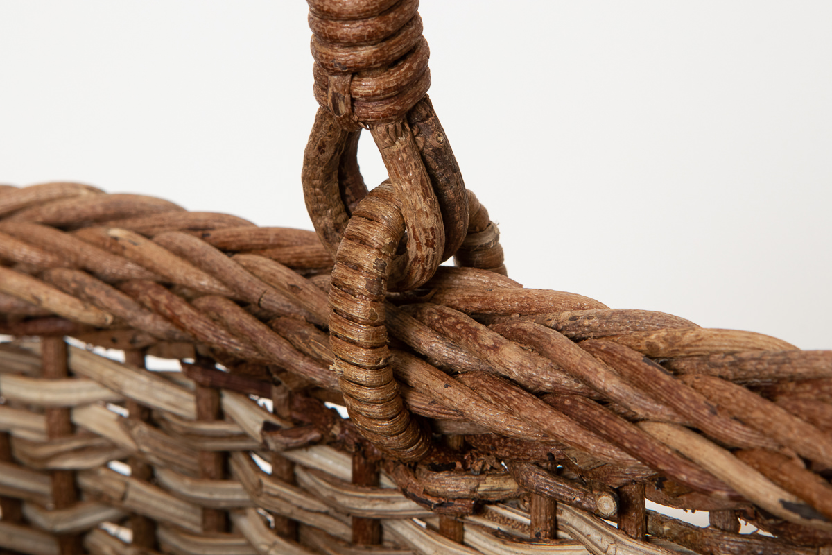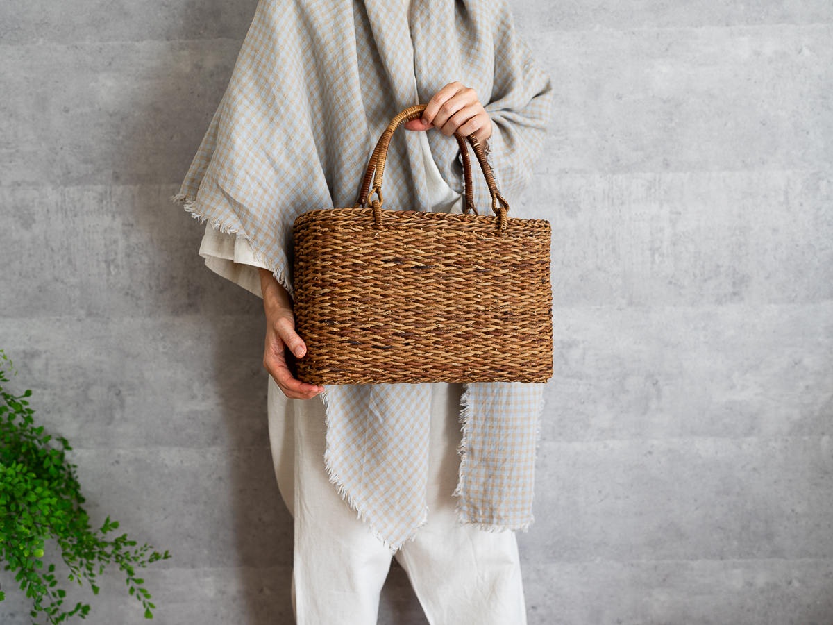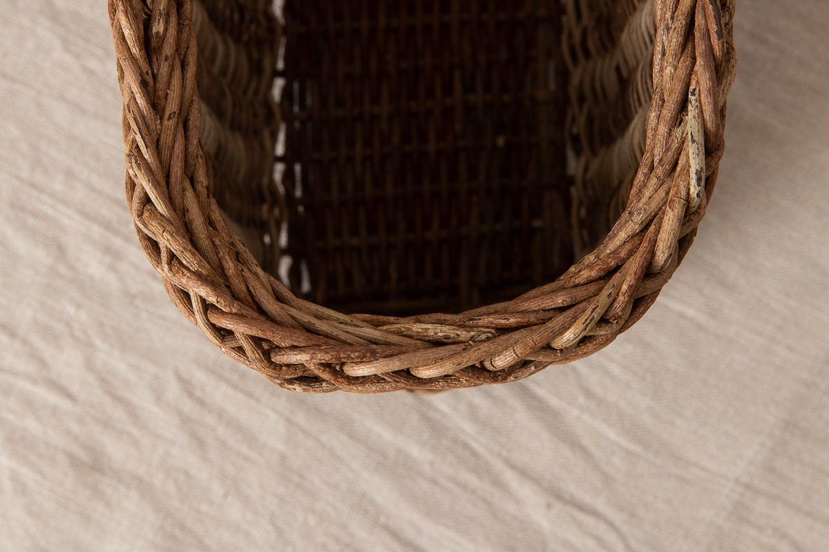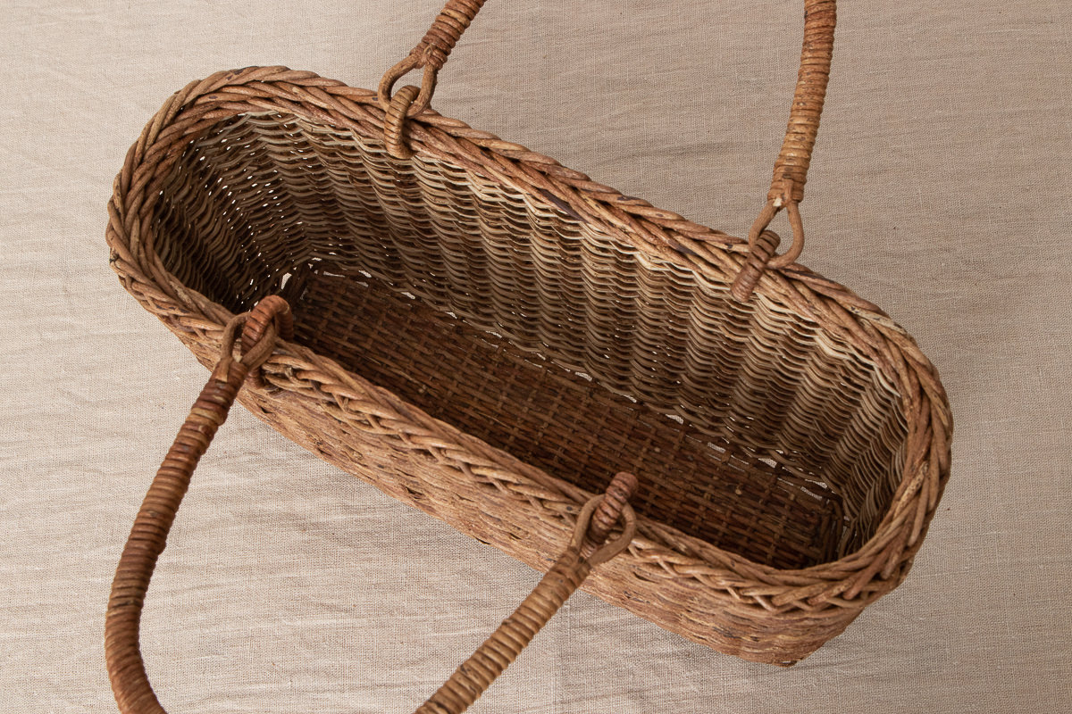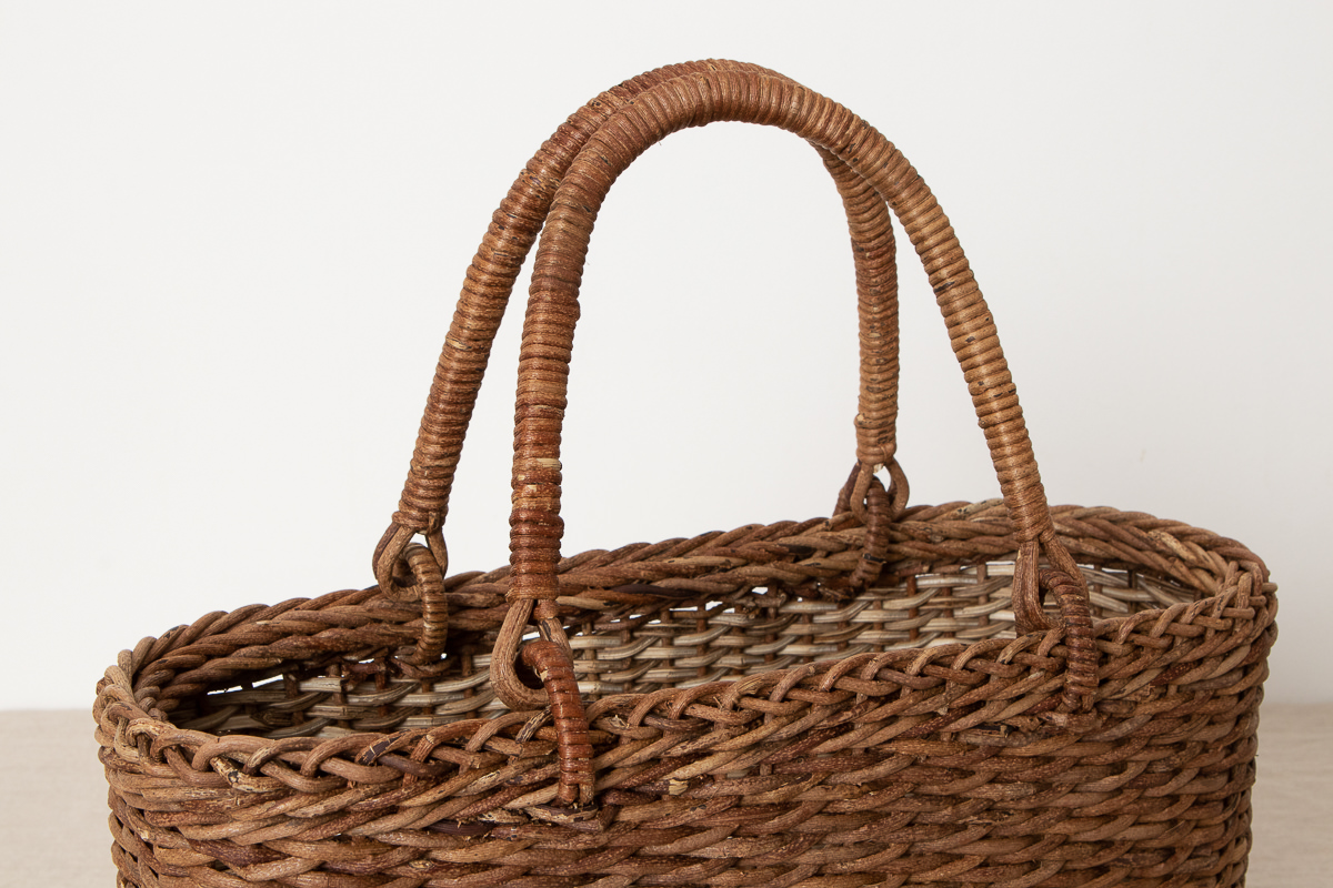 ひごがふんだんに使われ、みっしりと編まれていますが、蔓を半割りにしているため、かごにはそれほどの重さは感じられず、軽やかに持てそうです。