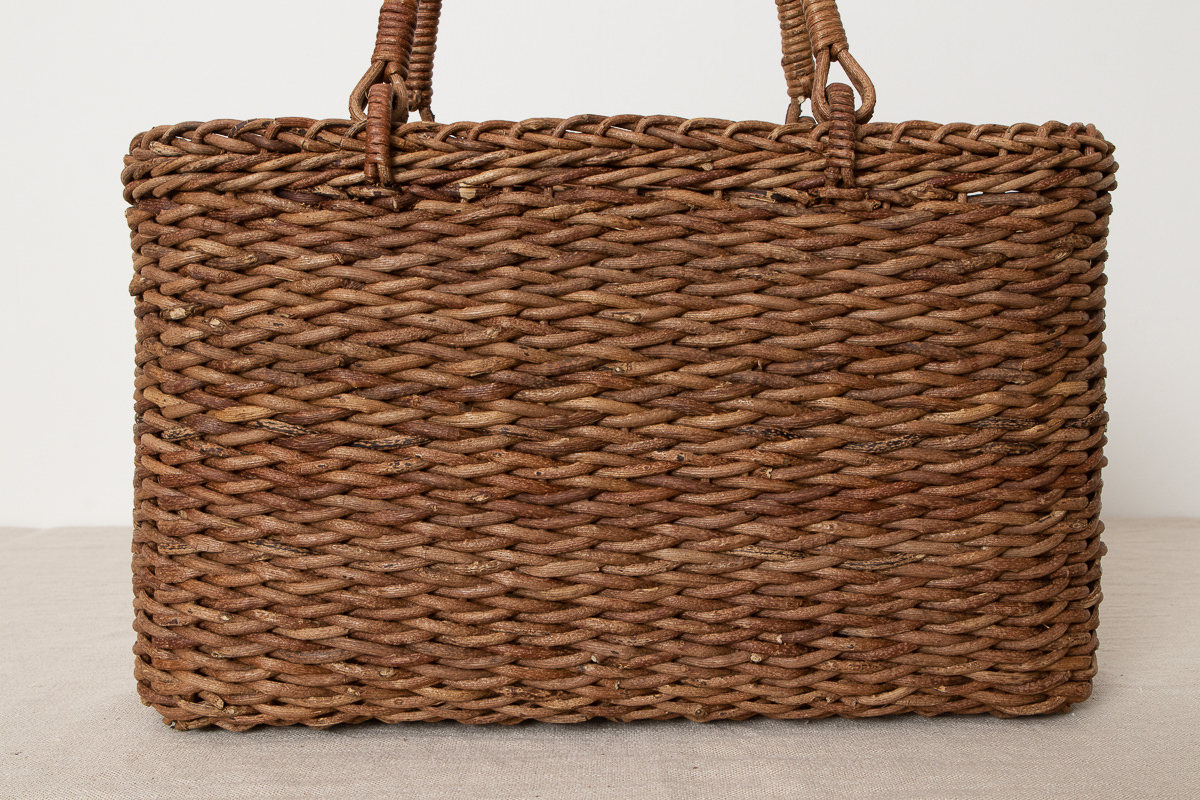 こちらは、あけびという樹木の蔓-つる-で編まれた、手提げです。