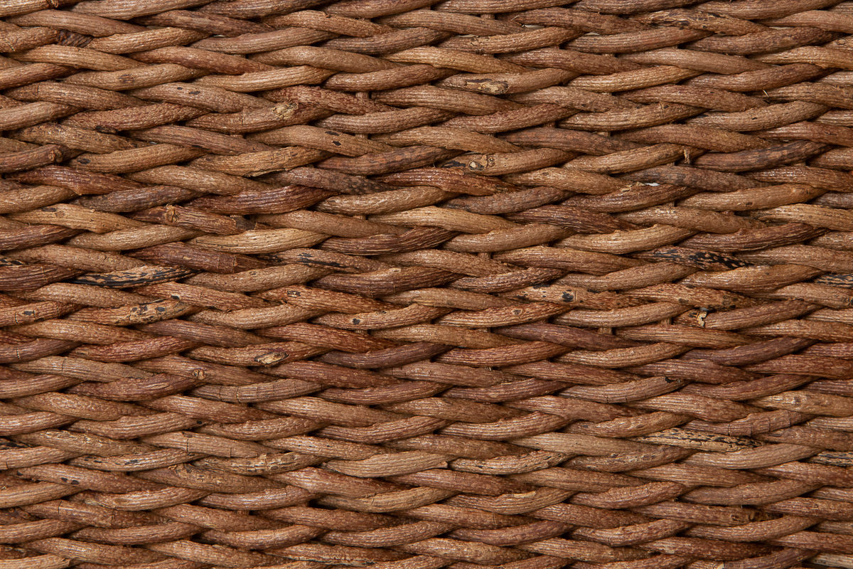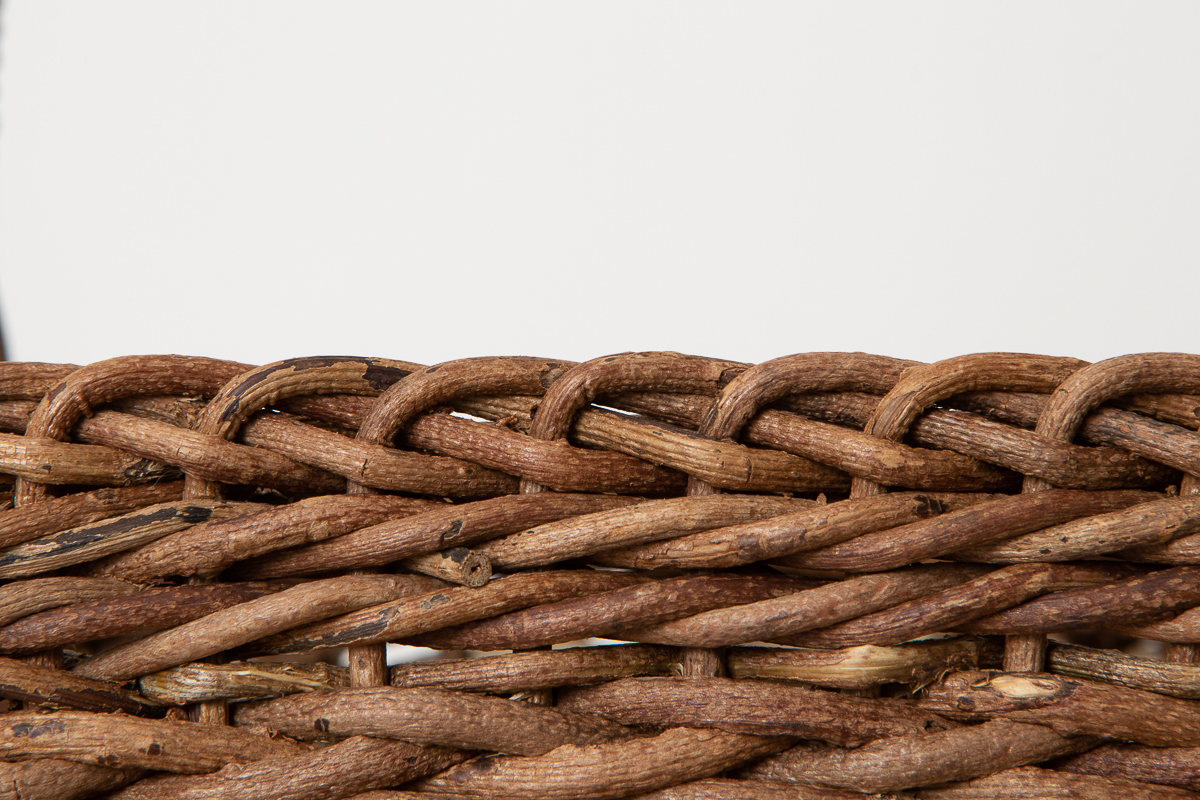 持ち手は最大でこのぐらい外側にひらき、内側にもパタンとたたむように置いておくことができます。かごの内側は、半分に割られた蔓の繊維部分がみられます。