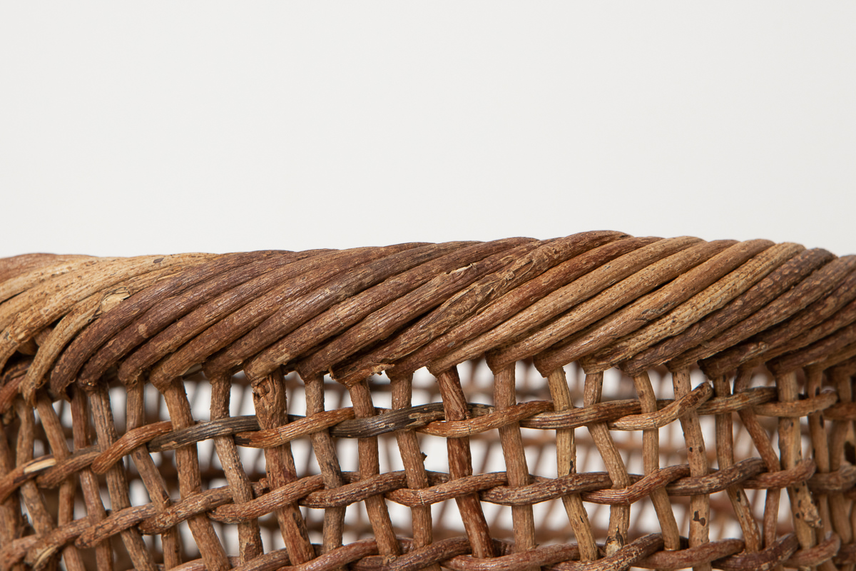 こちらは自然界での姿そのままの茶色い表皮がついたままの蔓で編んでいます。