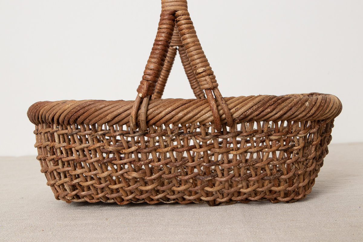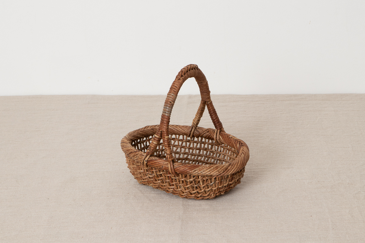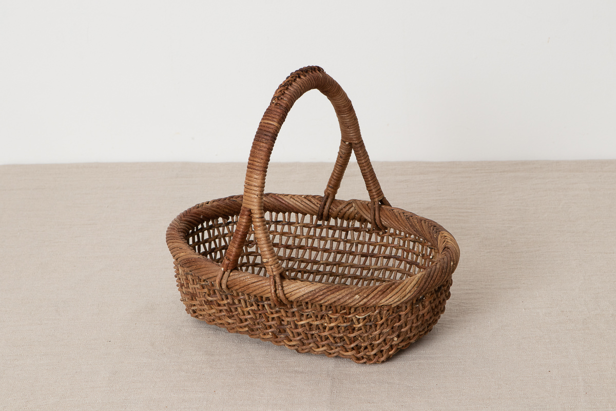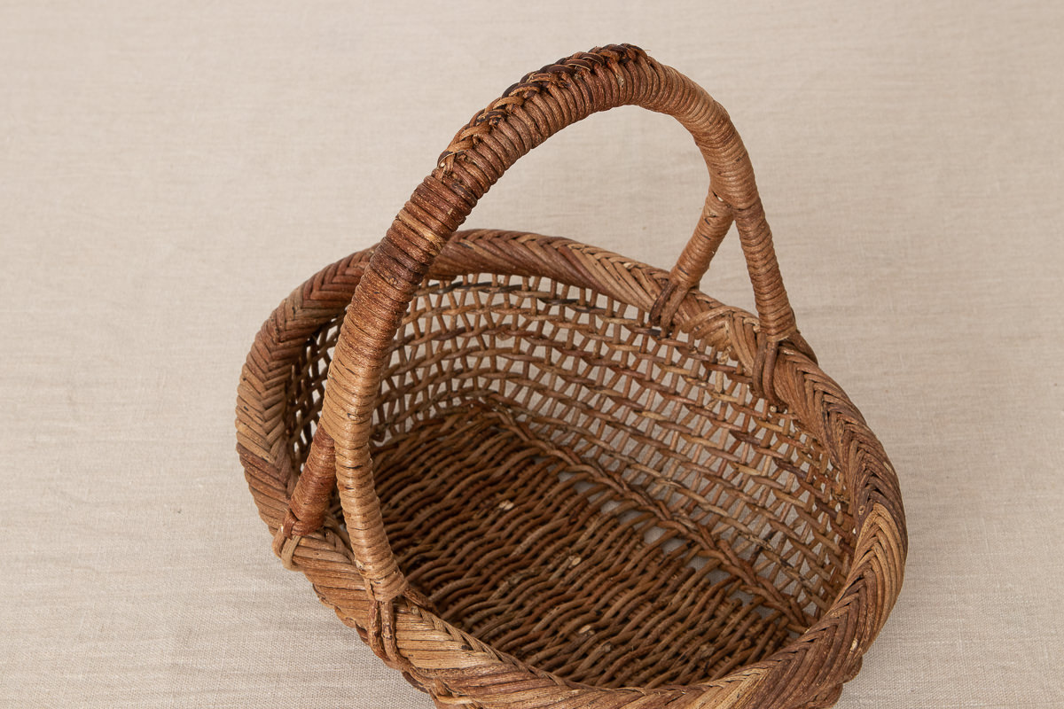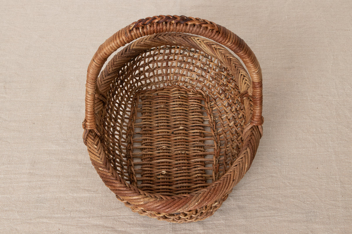 こちらはあけびの蔓で編まれた、持ち手がついたかごです。